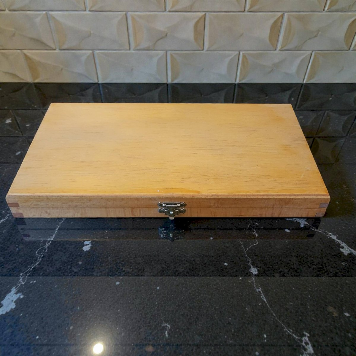 Lot 8 couteaux lame inox au diamant, manche bakélite ? avec boite ~23cm
