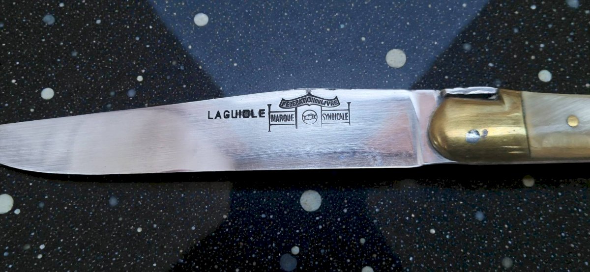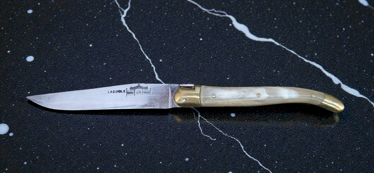 6 couteaux laguiole dans leur étui.Longueur 23,2 cmManche corne / Jamais utiliséTraces d'ancienneté minimes.