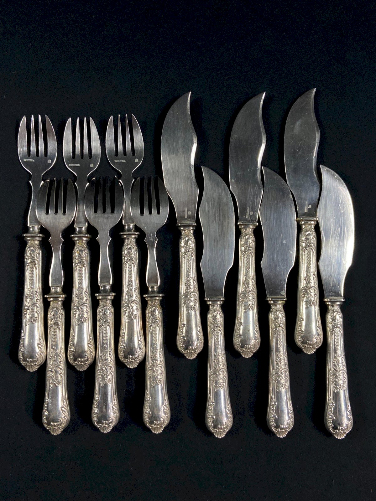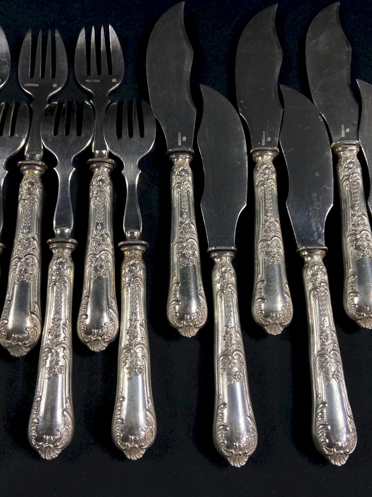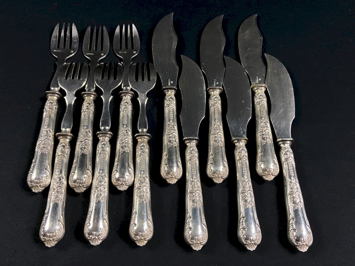 6 fourchettes à poisson 6 couteaux à poisson métal argenté BOULENGER Louis XV
