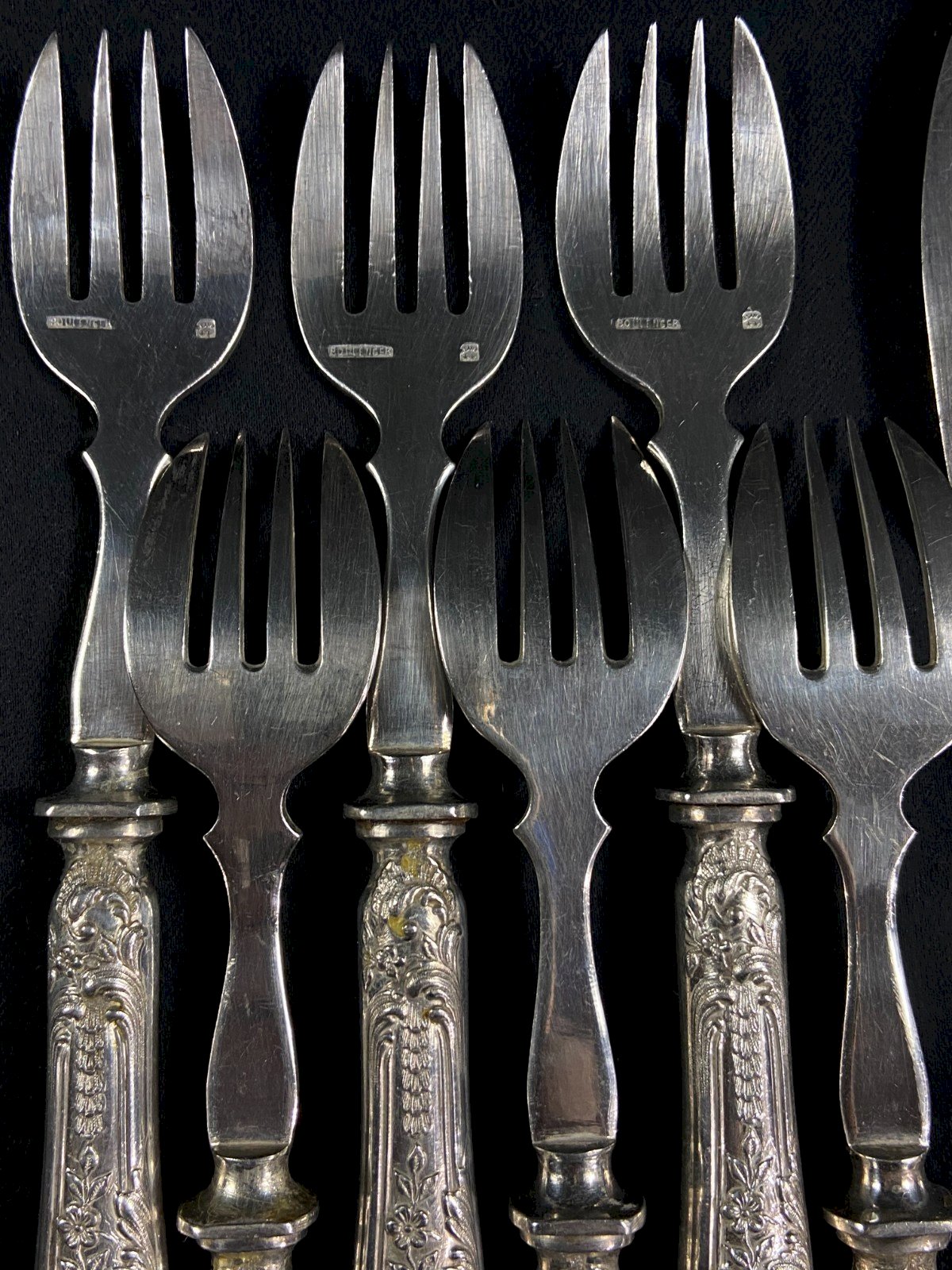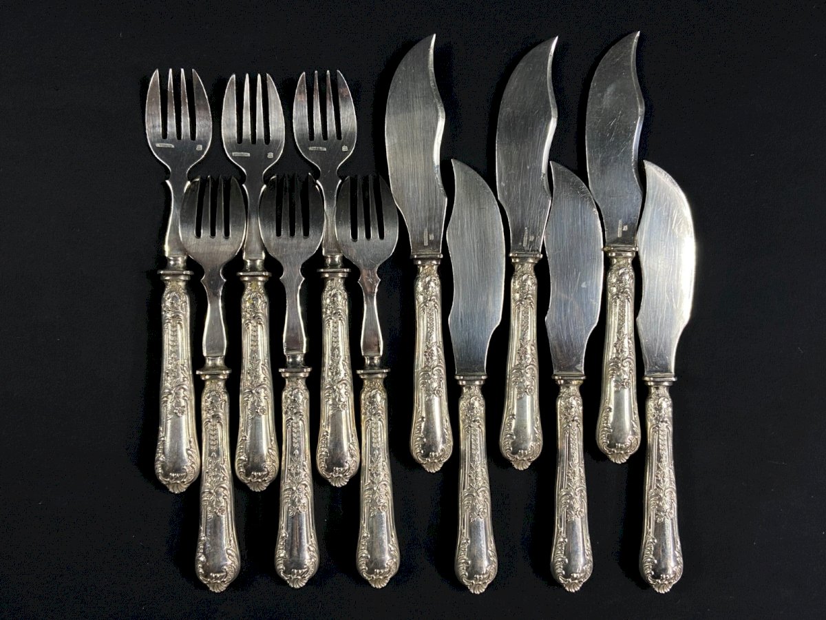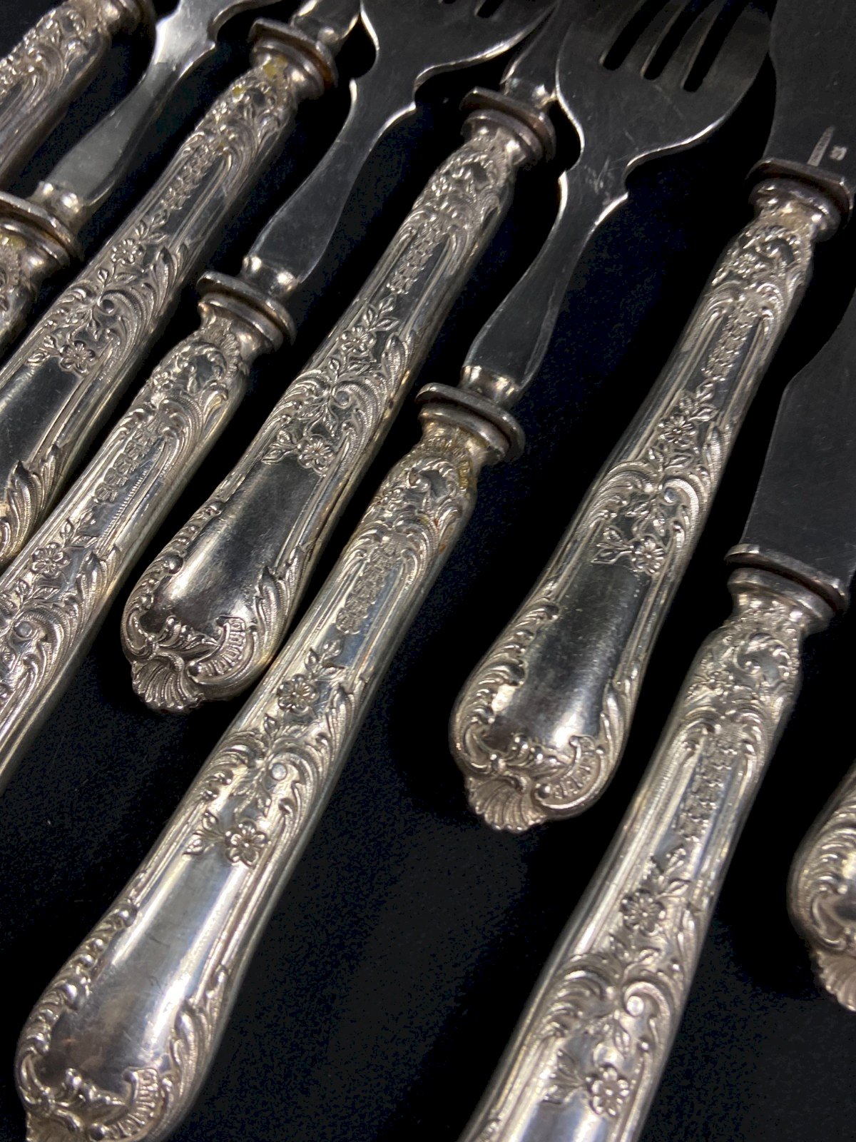 6 fourchettes à poisson 6 couteaux à poisson métal argenté BOULENGER Louis XV