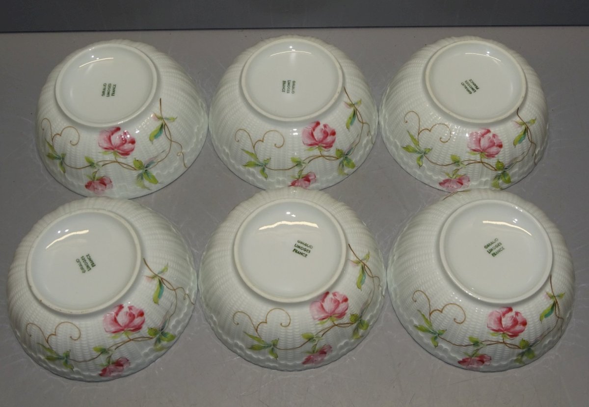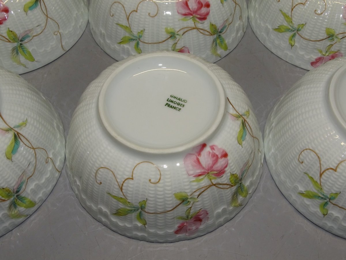6 jolies coupes en porcelaine de Limoges Giraud  ( voir photos ) - jus de trouvailles,  sorties de grenier - en bon état d'usage -  Réf.42141025/66  - 6 autres identiques disponibles voir dernière photo - Diamètre 11,7 cm Hauteur 5 cm - Poids 0,833 kg  -   EXPEDITION en Mondial Relay OU Colissimo possible sur demande   EMBALLAGE GARANTI très protecteur  MERCI de BIEN REGARDER TOUTES les PHOTOS car ELLES FONT PARTIE INTEGRANTE de la DESCRIPTION et PERMETTENT de VOIR l'OBJET AU MIEUX - État:Occasion: Objet ayant été utilisé. Objet présentant quelques marques d'usure superficielle, ...Occasion: Objet ayant été utilisé. Objet présentant quelques marques d'usure superficielle, entièrement opérationnel et fonctionnant correctement. Il peut s'agir d'un modèle de démonstration ou d'un objet retourné en magasin après une courte période d'utilisation. les éventuelles imperfections. Couleur:Multicouleur Marque:Limoges Type:COUPELLE Matériau:Porcelaine