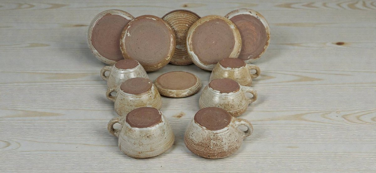 6 tasses / sous tasses en grès Pierre Lion Beige Céramique
