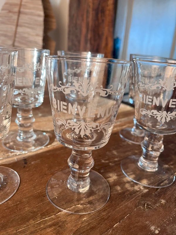 6 verres bistrot «bienvenue» en verre translucide motifs et écriture de couleur blanche.