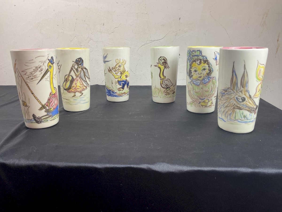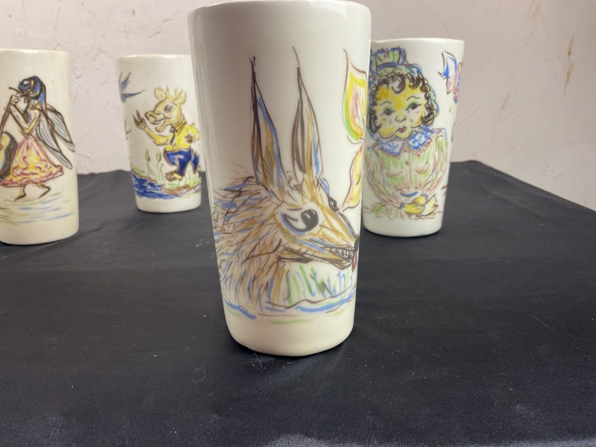 6 Verres - gobelet en céramique vintage fables de la fontaine