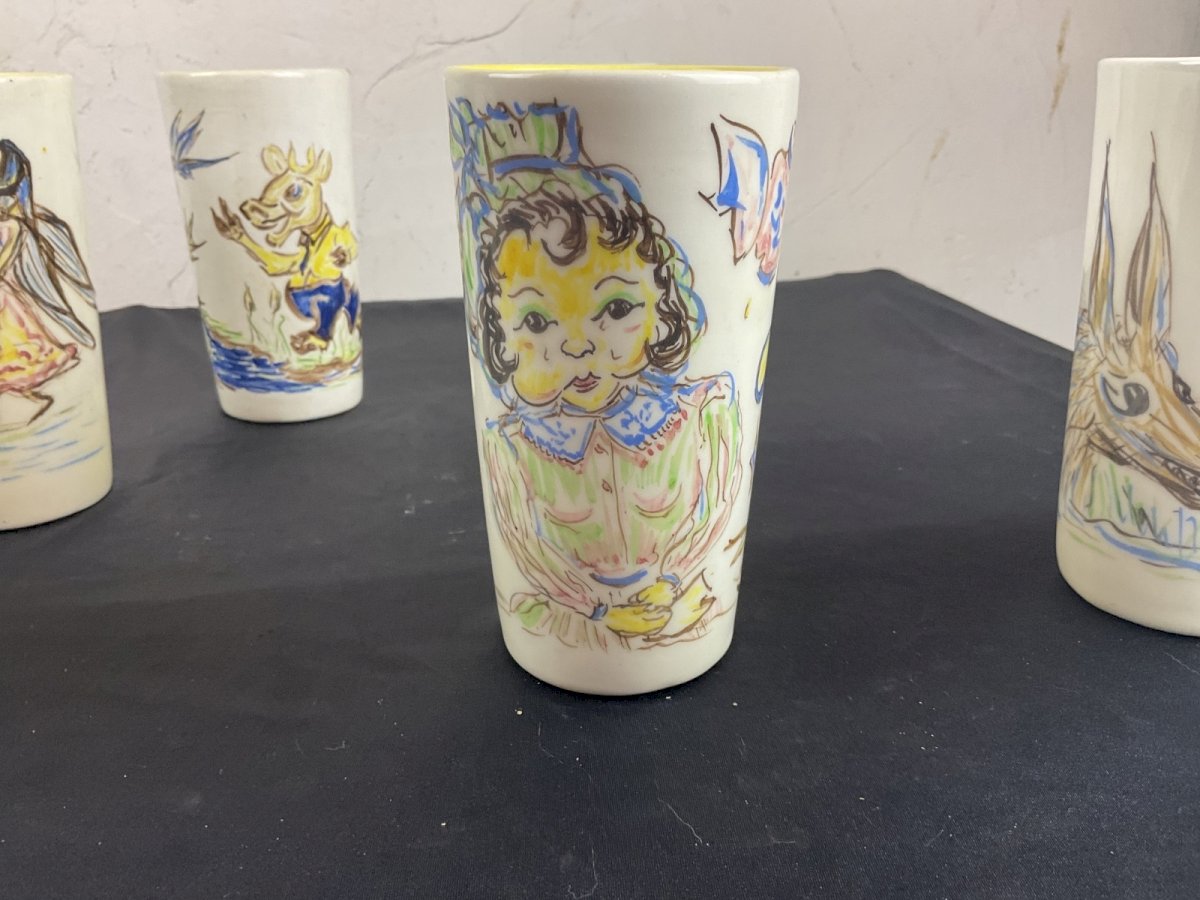 6 Verres - gobelet en céramique vintage fables de la fontaine  Hauteur : 14 cm Attention un gobelet et ébréchée