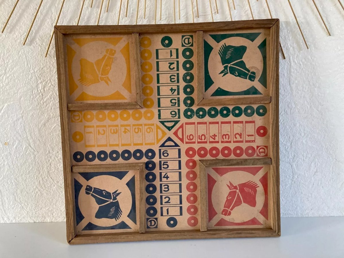 7⚜️ Ancien Plateau Jeu en Bois Jeu de Société Petits Chevaux Vintage Authentique