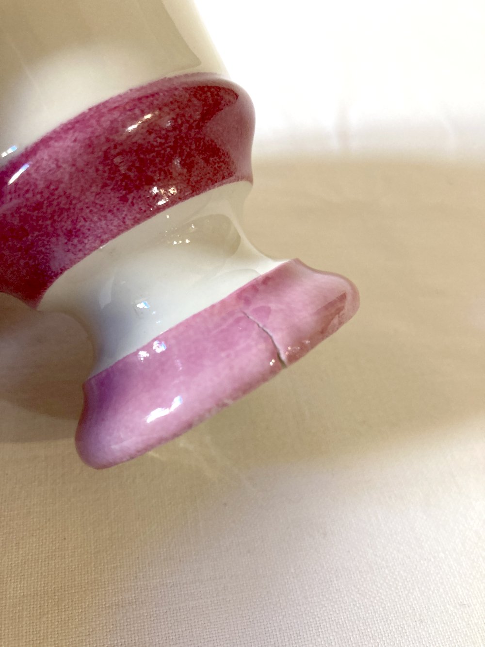 Ils sont en très bonne condition générale, on note deux tasses avec fissure de cuisson sur le rebord inférieur, ainsi qu'une tasse avec défaut de cuisson sur la base inférieure (en photos). Aucun défaut d'étanchéité, aucune ébréchure.