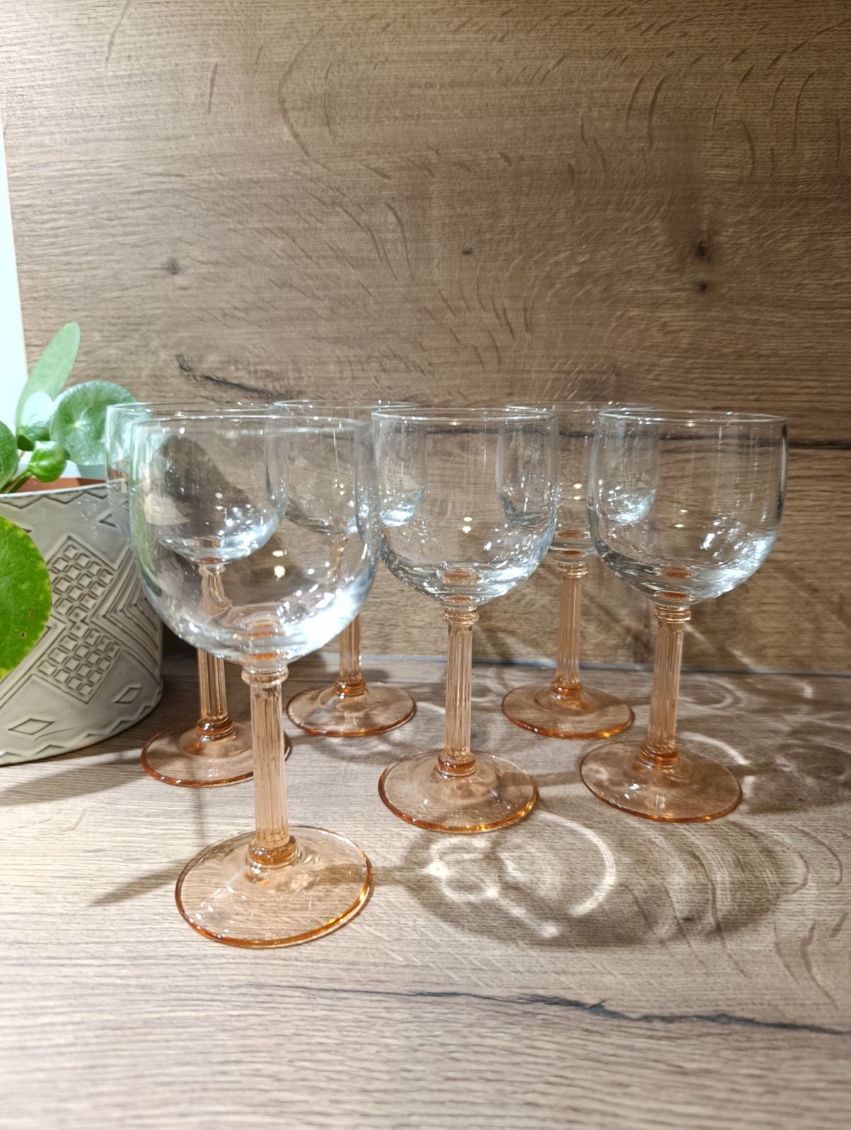 6 verres à vin pied côtelé rosaline de Luminarc | vintage