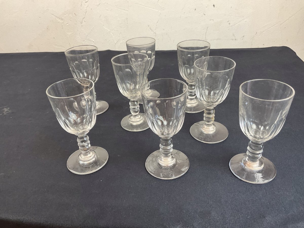 8 verre modèle style Gondole taille côtes plates, début XX En Cristallin  Hauteur : 11 cm Marque:Baccarat