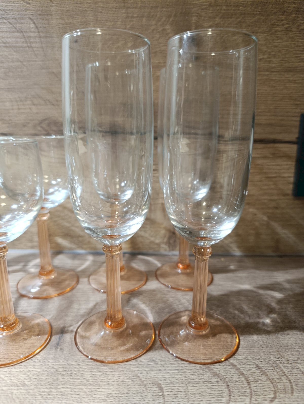 8 verres / flûtes pied côtelé rosaline de Luminarc | vintage
