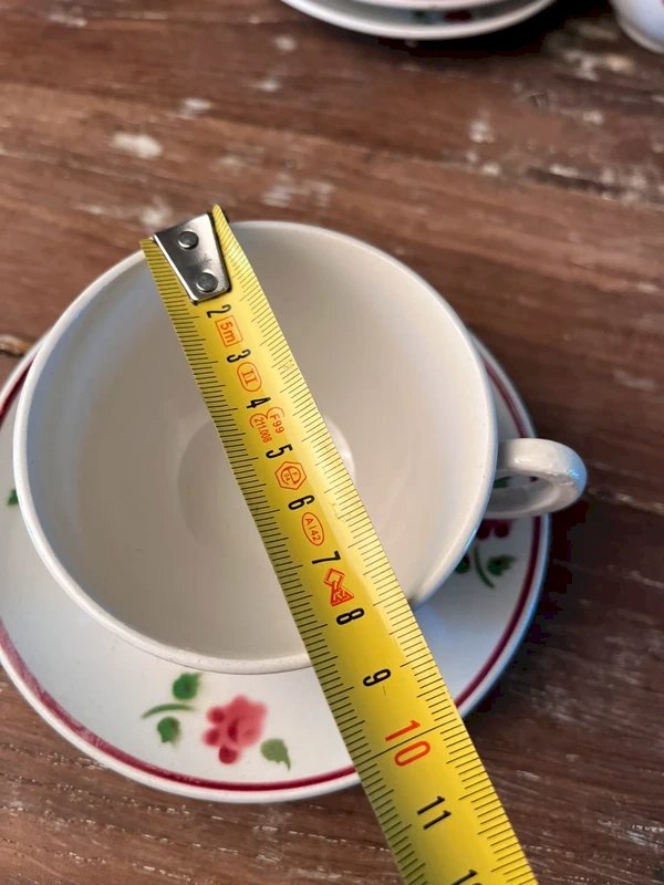 9 tasses à café et sous-tasses en faïence ancienne Lunéville modèle Rosine.