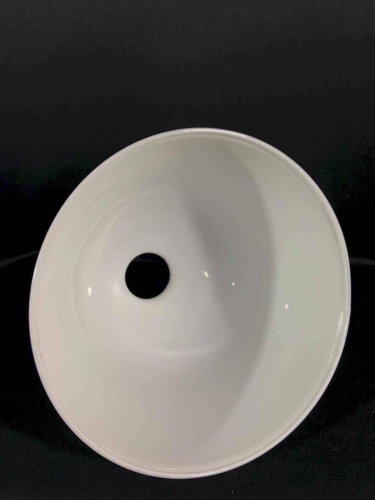 Abat-jour réflecteur en verre opalin blanc, de style Mazda Dôme en verre opalin épais , surface lisse et brillante, ouverture circulaire pour fixation sur bague ou douille standard (symboliques micro égrenures recouvertes par la monture) Modèle typique du style Mazda / industriel français , adapté aux lampes de bureau, suspensions, ou appliques vintage . Dimensions max : Diamètre 20,5 x Hauteur 15,2 x Diamètre d'encastrement 4,3 cm Poids : 471 grammes Envoi TRES soigné dans le monde entier Marque:Mazda Type:Abat-jour Période:Design du XXème Pays d'origine:France Sous-type:Lampe de table Couleur dominante:Blanc Matière:Opaline Style:1940-1960 Caractéristiques:Réflecteur