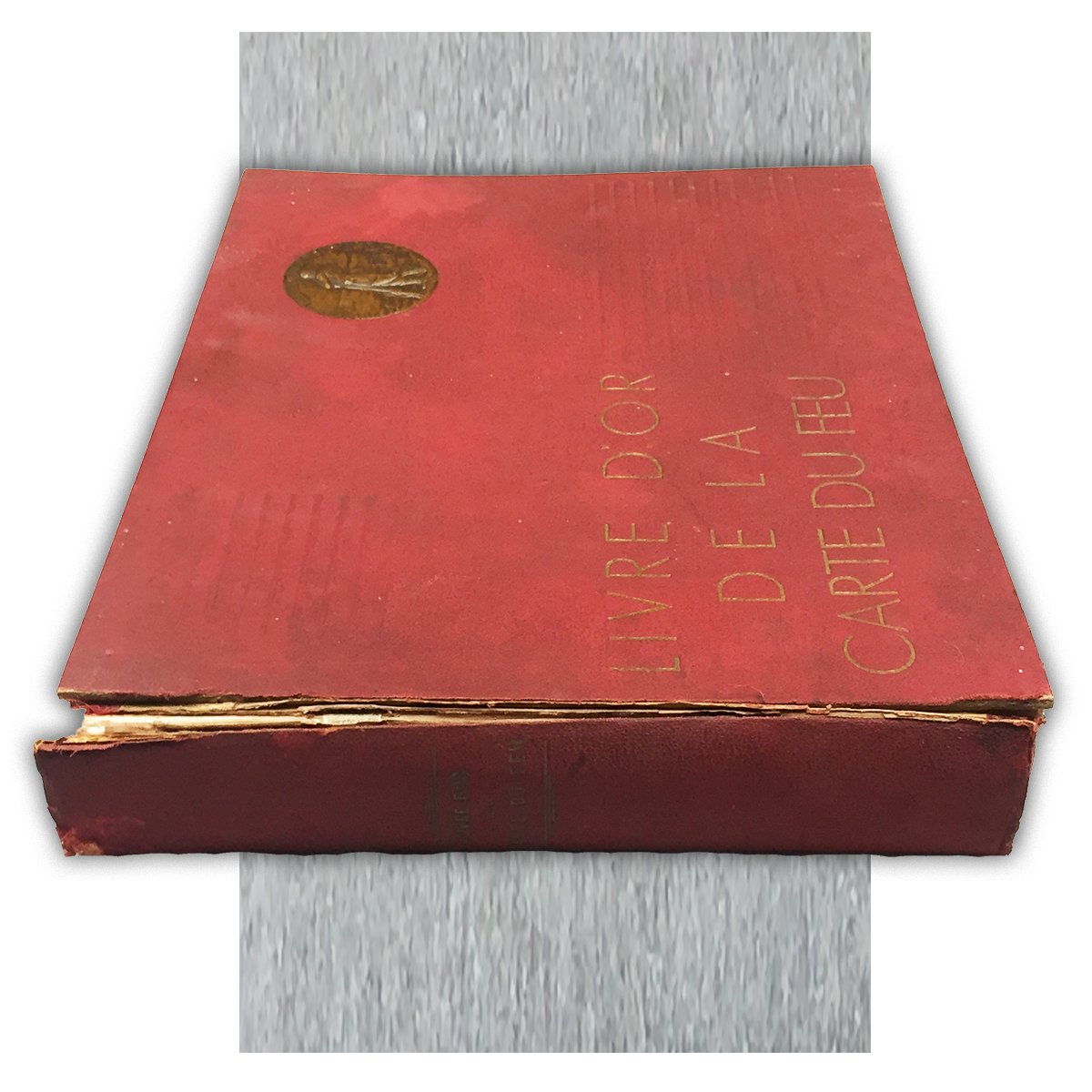 Très belle et exceptionnel livre d'or de la carte du feu, en bon état, couverture à revoir, sinon excellent état ! Avec un document original d'époque sur la carte du feu. Très agréable à tenir en mains et encore plus à observer en vitrine. Très rare et 100% original.