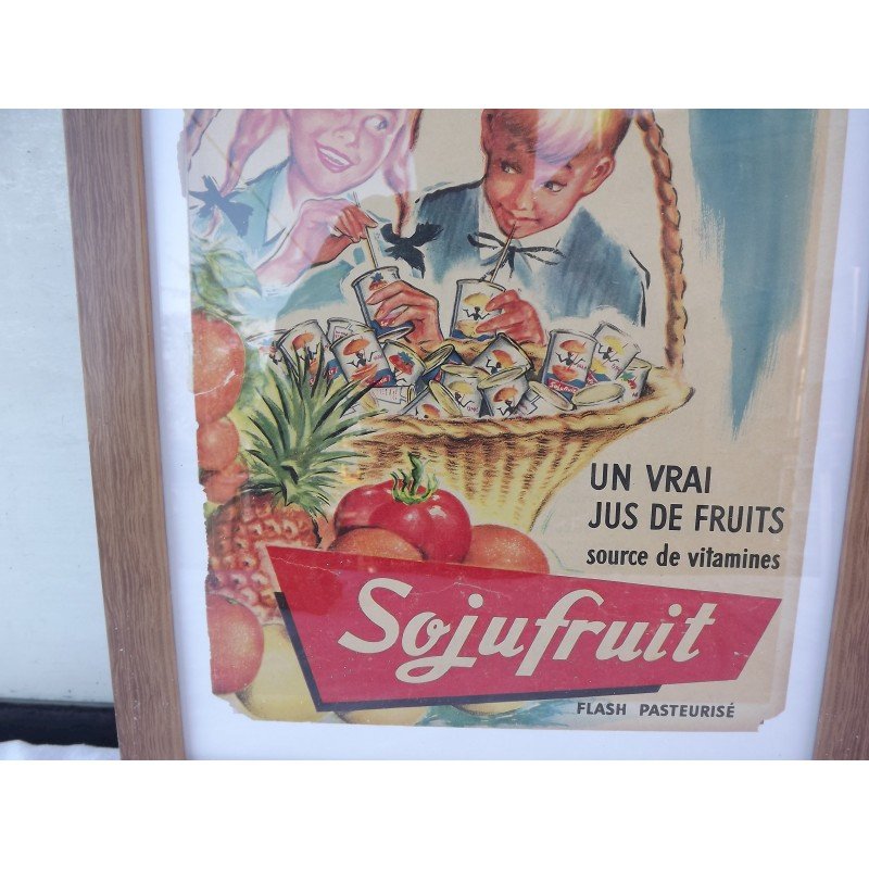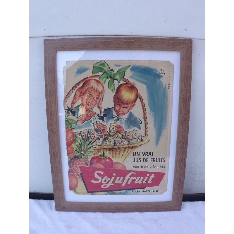 Affiche Pub SOJUFRUIT 1958  O Kley , dimensions encadrée sous verre  : 40 cm sur 30 cm  , trés bon ètat , visible à GARDONNE (24) envoi en mondial relay de : 6 € ou colissimo : 8,50 €