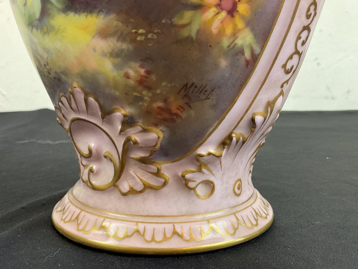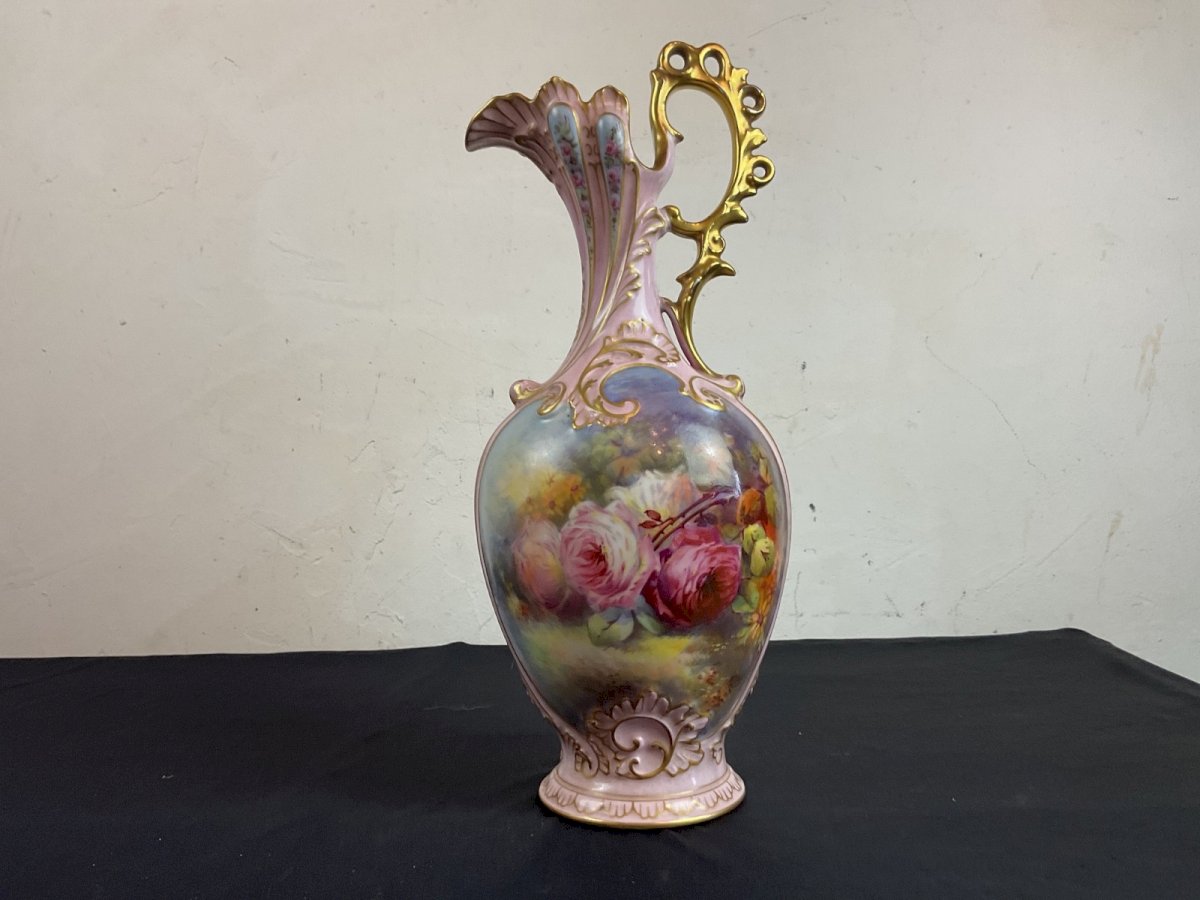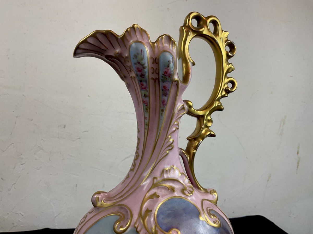 AIGUIERE EN PORCELAINE PEINTE PAR MILLET décor de rose