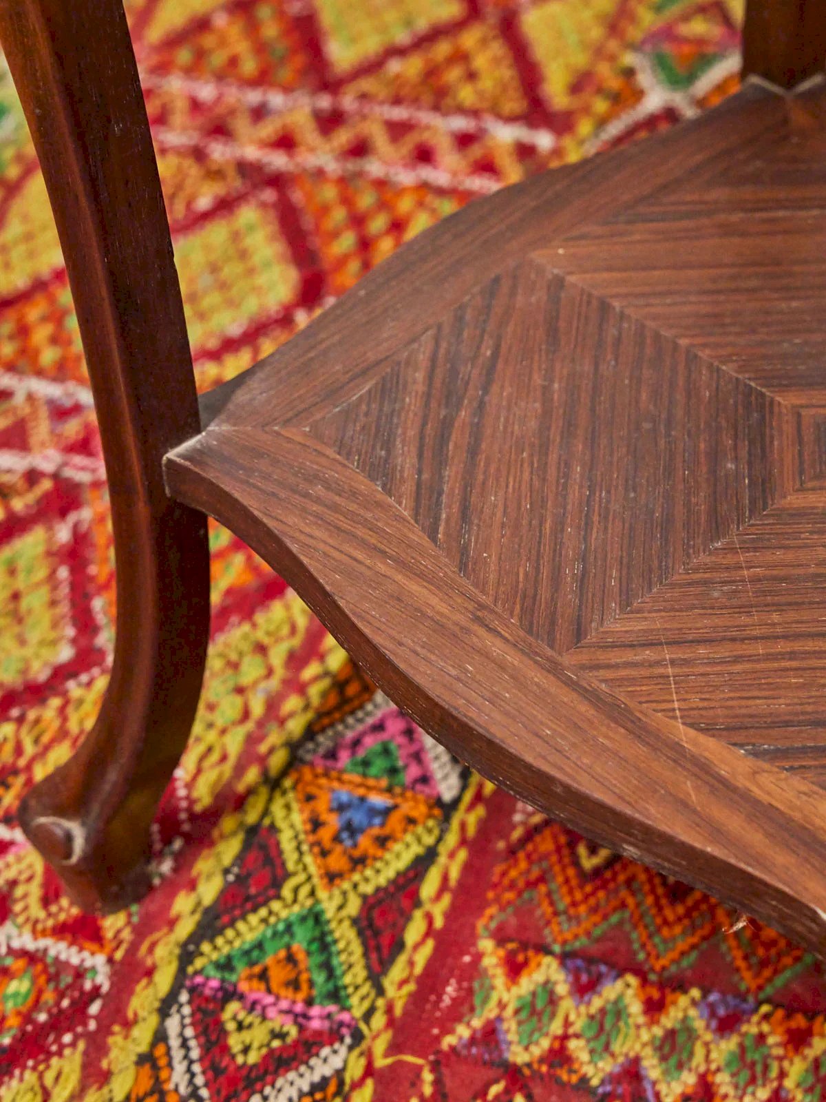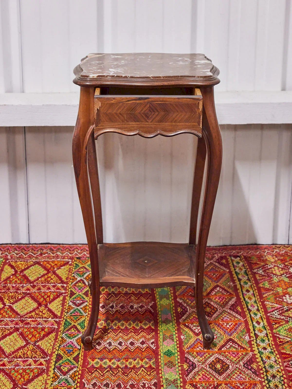 Sublimez votre intérieur avec ce guéridon en bois et marbre rose, où la minéralité délicate du plateau dialogue avec la chaleur du piètement. Son gabarit compact en fait un allié discret pour accueillir une lampe, un livre ou une tasse, tout en structurant un coin salon ou une entrée. Le mariage des matières crée une silhouette à la fois sobre et élégante, apportant une touche douce et raffinée à l'ambiance de la pièce. Longueur : 40 cm Largeur : 40 cm Hauteur : 80 cm État:Occasion: Objet ayant été utilisé. Objet présentant quelques marques d'usure superficielle, ...Occasion: Objet ayant été utilisé. Objet présentant quelques marques d'usure superficielle, entièrement opérationnel et fonctionnant correctement. Il peut s'agir d'un modèle de démonstration ou d'un objet retourné en magasin après une courte période d'utilisation. les éventuelles imperfections. Marque:Debongout Type:Produit chiné Matériau:Marbre, Bois Style:Campagne Personnalisé:Guéridons