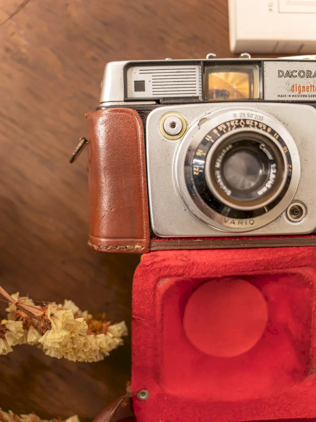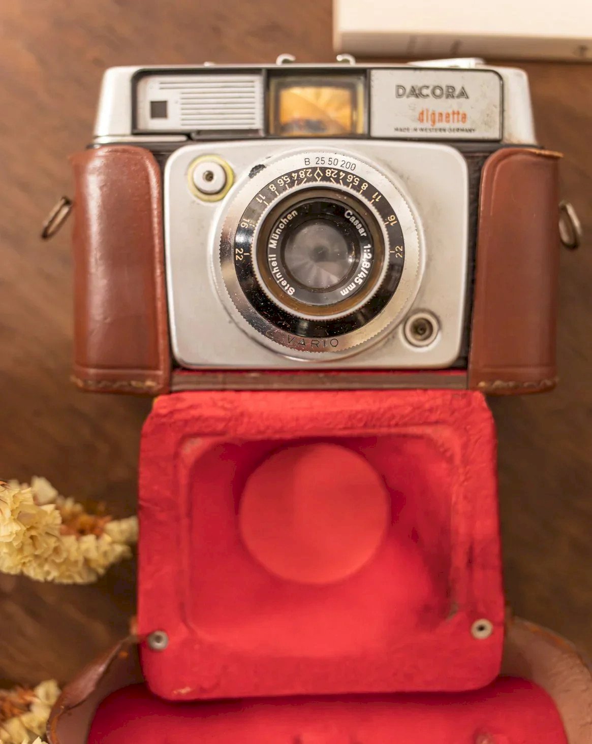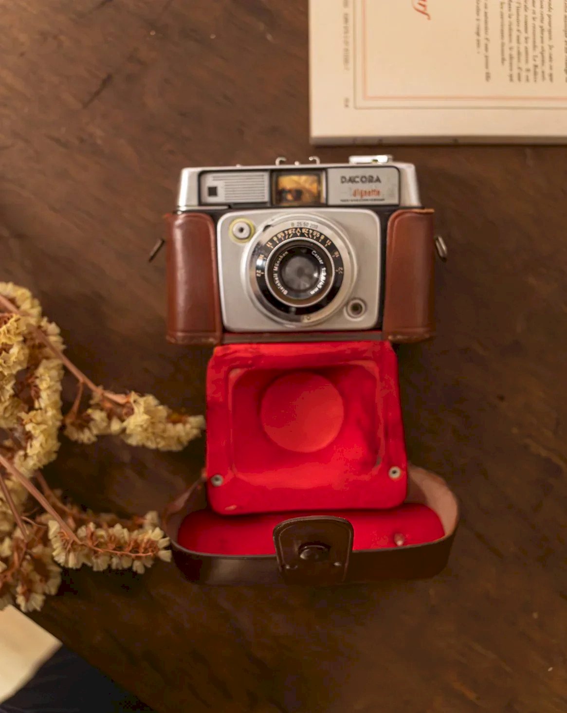 Invitez une note vintage dans votre intérieur avec cet appareil photo décoratif au boîtier noir et argenté, accompagné d'un étui en cuir couleur camel bordeaux. Sa silhouette sobre et ses proportions compactes en font un objet d'appoint élégant pour une étagère, une console ou un bureau, capable d'instaurer une atmosphère chaleureuse et raffinée. Le cuir patiné apporte une profondeur visuelle et raconte une histoire à chaque regard. Légères traces du temps sur le cuir. Longueur : 15 cm Largeur : 7,5 cm Hauteur : 10 cm État:Occasion: Objet ayant été utilisé. Objet présentant quelques marques d'usure superficielle, ...Occasion: Objet ayant été utilisé. Objet présentant quelques marques d'usure superficielle, entièrement opérationnel et fonctionnant correctement. Il peut s'agir d'un modèle de démonstration ou d'un objet retourné en magasin après une courte période d'utilisation. les éventuelles imperfections. Marque:Debongout Type:Produit chiné Matériau:Plastique, Cuir, Métal, Verre Style:Contemporain