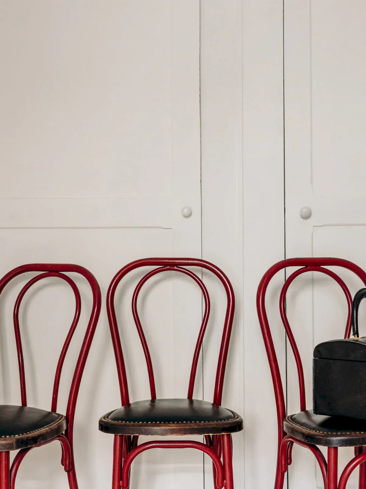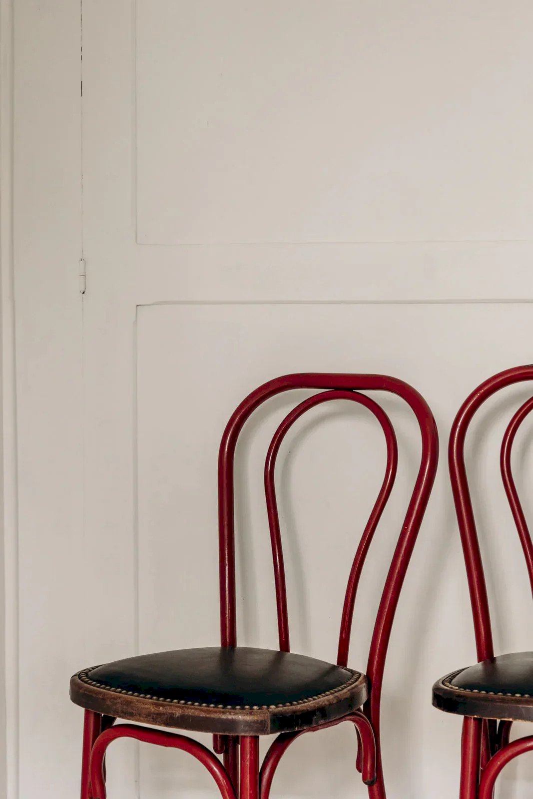 Craquez pour cette chaise bistrot de style Thonet en métal bordeaux. Son assise en skaï noir, décorée de clous, apporte une touche vintage et pleine de caractère à n'importe quel intérieur. Parfaite pour ajouter un esprit rétro et chaleureux, elle s’intègre aisément dans une salle à manger ou un coin café. Vendue à l'unité, 3 exemplaires sont disponibles. À noter qu'une des assises présente une marque d'usure sur le skaï, visible en détail sur les photos. Longueur : 37 cm Hauteur : 88 cm Hauteur d'assise : 45,5 cm Profondeur : 35 cm État:Occasion: Objet ayant été utilisé. Objet présentant quelques marques d'usure superficielle, ...Occasion: Objet ayant été utilisé. Objet présentant quelques marques d'usure superficielle, entièrement opérationnel et fonctionnant correctement. Il peut s'agir d'un modèle de démonstration ou d'un objet retourné en magasin après une courte période d'utilisation. les éventuelles imperfections. Couleur:Multicouleur Hauteur:Métal, Skaï, Bois Largeur:Chaises Marque:Debongout Type:Produit chiné Matériau:Métal, Skaï, Bois Style:Contemporain
