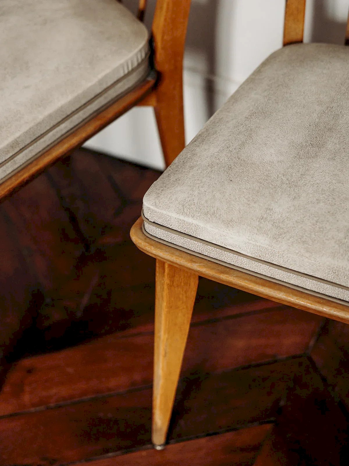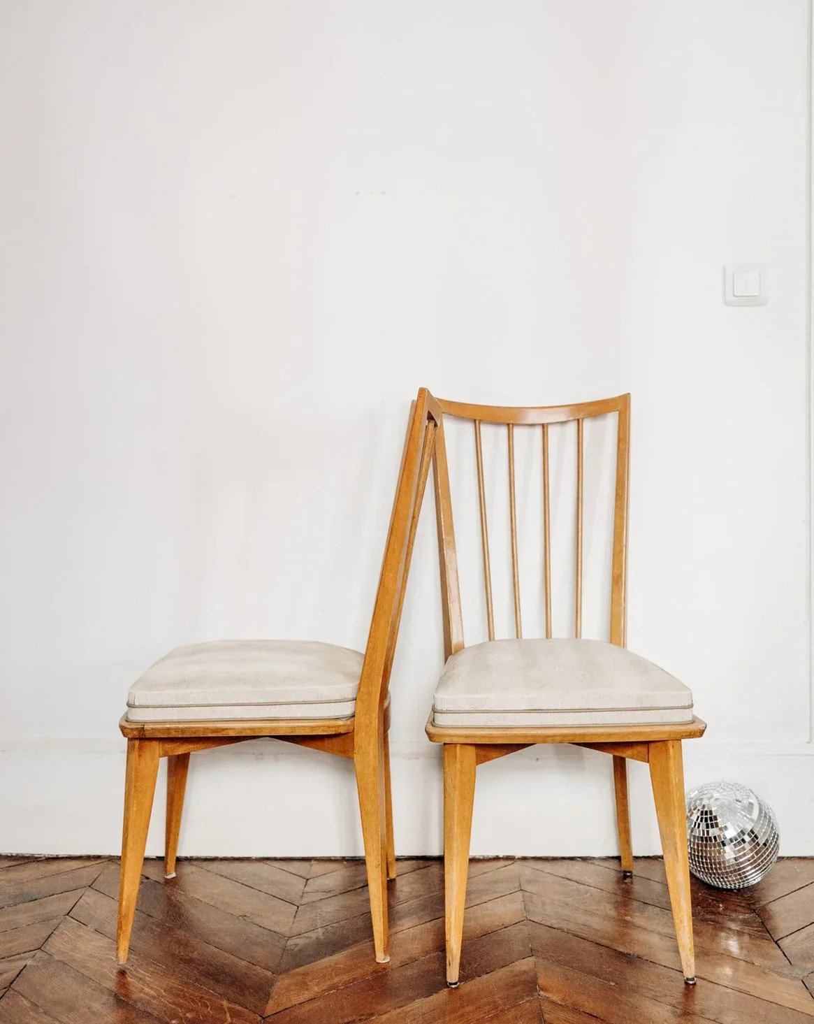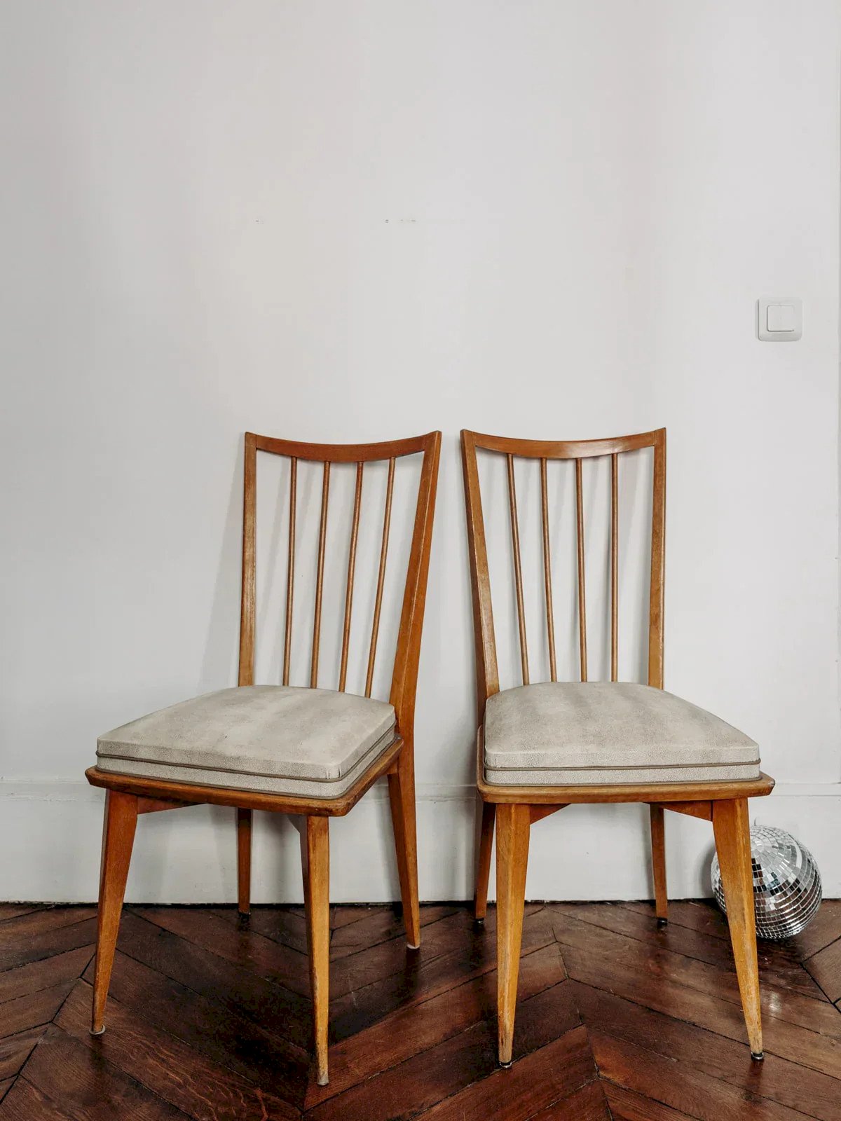 Cette chaise à barreaux fins en bois et à l'assise en simili-cuir blanc au toucher effet poil, allie confort et élégance. Son design simple et raffiné s’intègre facilement dans divers styles de décoration ! Quelques traces du temps sont visibles sur le bois, comme montré sur les photos, mais cela n'altère en rien son charme et son confort. Vendues à l'unité, 2 exemplaires sont disponibles. Exclusivité web, la rencontre se fera chez vous ! Longueur : 44 cm Hauteur : 95 cm Hauteur d'assise : 46 cm Profondeur : 45 cm État:Occasion: Objet ayant été utilisé. Objet présentant quelques marques d'usure superficielle, ...Occasion: Objet ayant été utilisé. Objet présentant quelques marques d'usure superficielle, entièrement opérationnel et fonctionnant correctement. Il peut s'agir d'un modèle de démonstration ou d'un objet retourné en magasin après une courte période d'utilisation. les éventuelles imperfections. Couleur:Multicouleur Hauteur:Bois, Simili cuir Largeur:Chaises Marque:Debongout Type:Produit chiné Matériau:Bois, Simili cuir Style:Contemporain