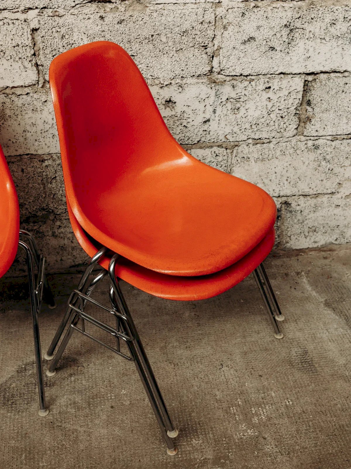 Découvrez cette chaise emblématique des années 1970-80, éditée par Herman Miller et distribuée par Vitra, conçue par les designers Eames. Sa coque en fibre de verre orange vif et ses pieds en métal chromé apportent une touche de couleur et de modernité à votre intérieur. Quelques traces du temps sur l'assise témoignent de son authenticité et de son caractère. Pratique, cette chaise est empilable pour un rangement facile. Une pièce vintage, produite en Suisse, qui allie design, confort et fonctionnalité. Vendues à l'unité, 20 exemplaires sont disponibles. Longueur : 47 cm Largeur : 45 cm Hauteur : 81 cm Hauteur d'assise : 44 cm État:Occasion: Objet ayant été utilisé. Objet présentant quelques marques d'usure superficielle, ...Occasion: Objet ayant été utilisé. Objet présentant quelques marques d'usure superficielle, entièrement opérationnel et fonctionnant correctement. Il peut s'agir d'un modèle de démonstration ou d'un objet retourné en magasin après une courte période d'utilisation. les éventuelles imperfections. Couleur:Multicouleur Hauteur:Fibre de verre, Métal Largeur:Chaises Marque:Debongout Type:Produit chiné Matériau:Fibre de verre, Métal Style:Contemporain