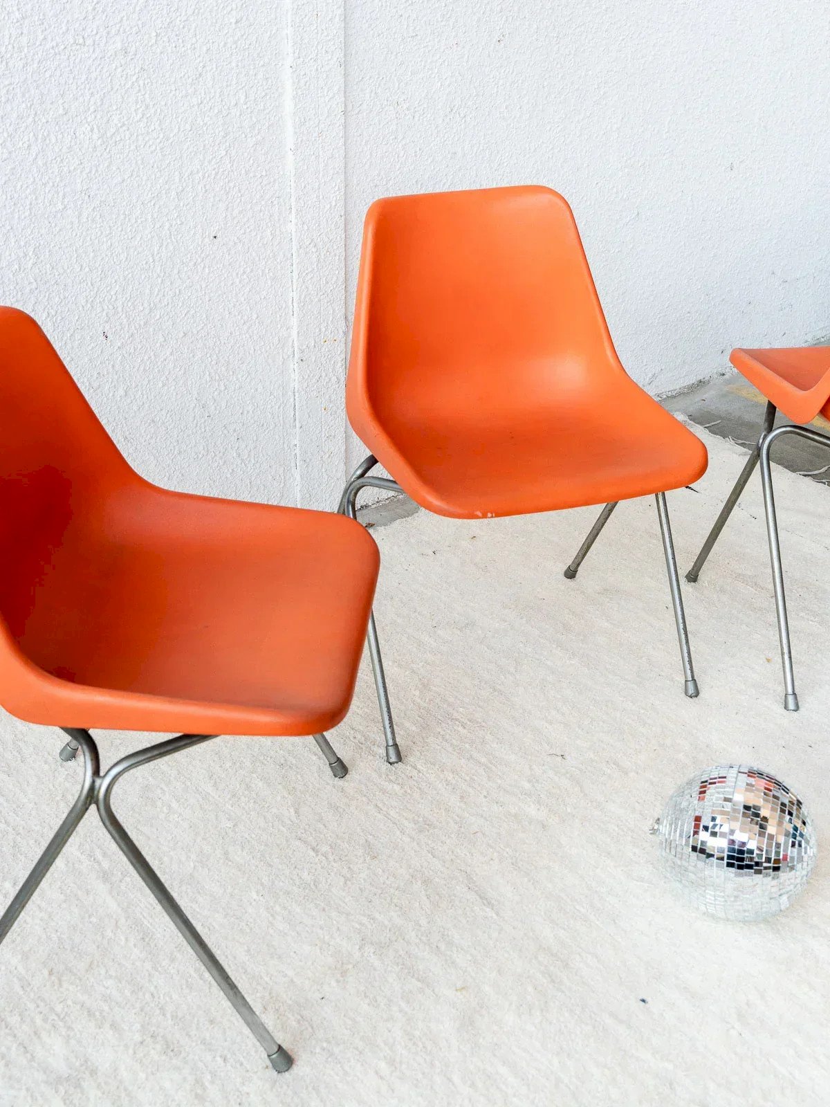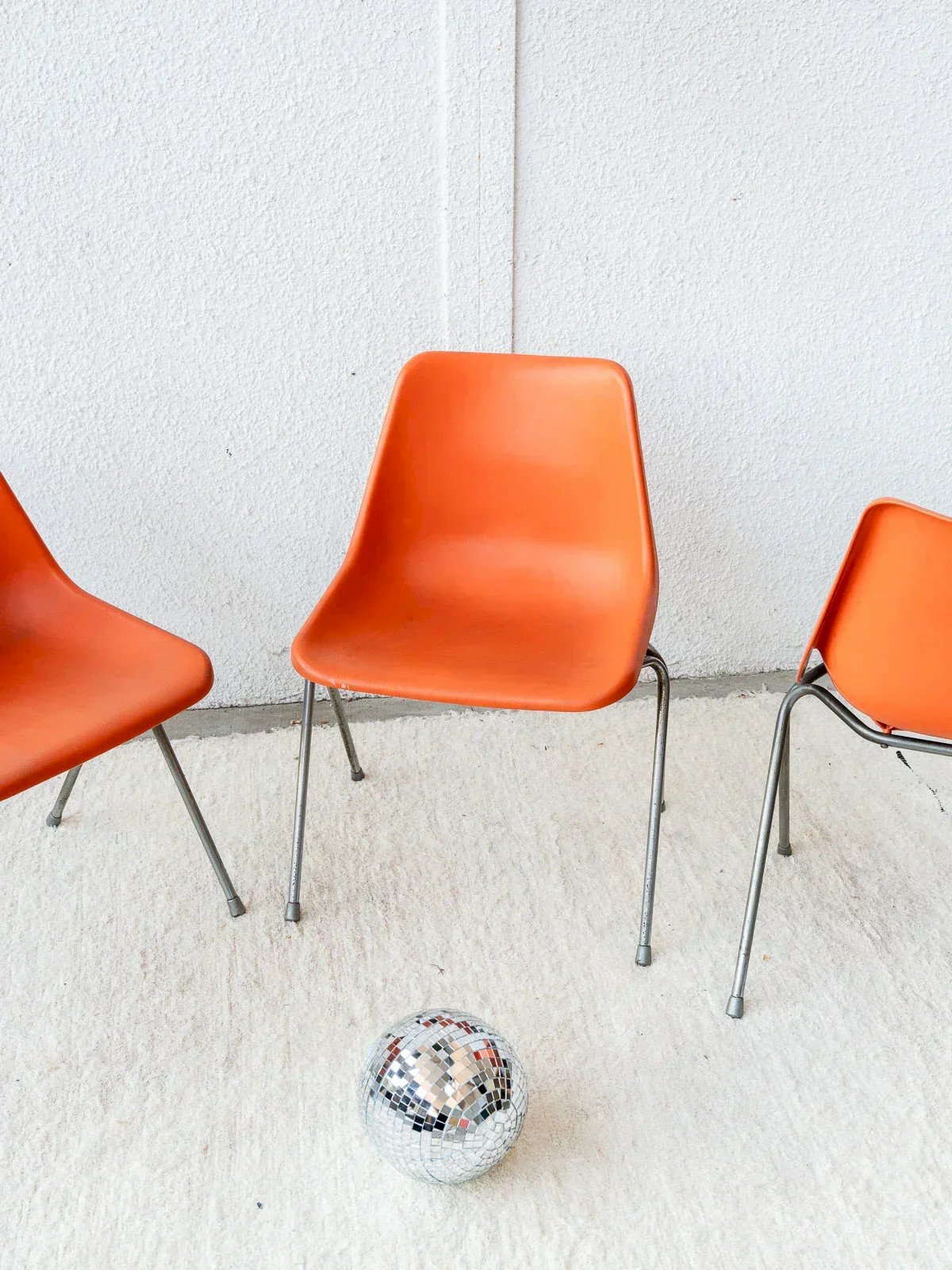 Découvrez ces élégantes chaises orange conçues par Robin Day, un véritable classique du design contemporain. Fabriquées en résine durable avec pieds en métal robuste, elle allie style et fonctionnalité. Bien que ces pièces présentent quelques traces d'usage, elles restent séduisantes et apportent une touche de couleur à votre intérieur. Faites l'acquisition d'un design intemporel avec ce modèle emblématique. Largeur : 45,5 cm Hauteur : 74 cm Hauteur d'assise : 43 cm Profondeur de l'assise : 37 cm État:Occasion: Objet ayant été utilisé. Objet présentant quelques marques d'usure superficielle, ...Occasion: Objet ayant été utilisé. Objet présentant quelques marques d'usure superficielle, entièrement opérationnel et fonctionnant correctement. Il peut s'agir d'un modèle de démonstration ou d'un objet retourné en magasin après une courte période d'utilisation. les éventuelles imperfections. Couleur:Multicouleur Hauteur:Résine, Métal Largeur:Chaises Marque:Debongout Type:Produit chiné Matériau:Résine, Métal Style:Contemporain