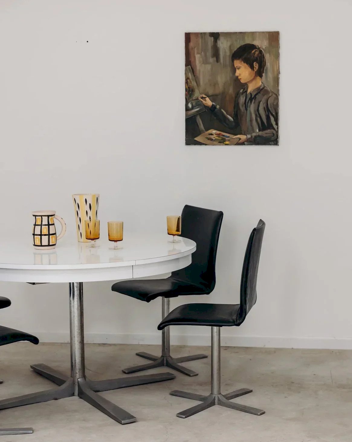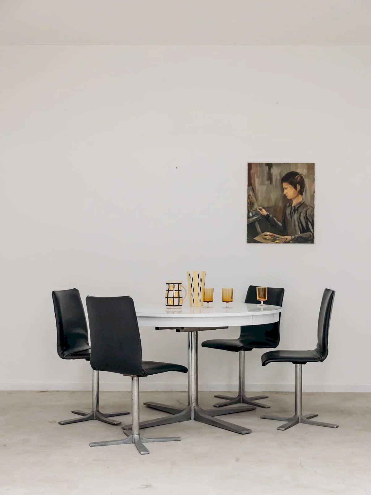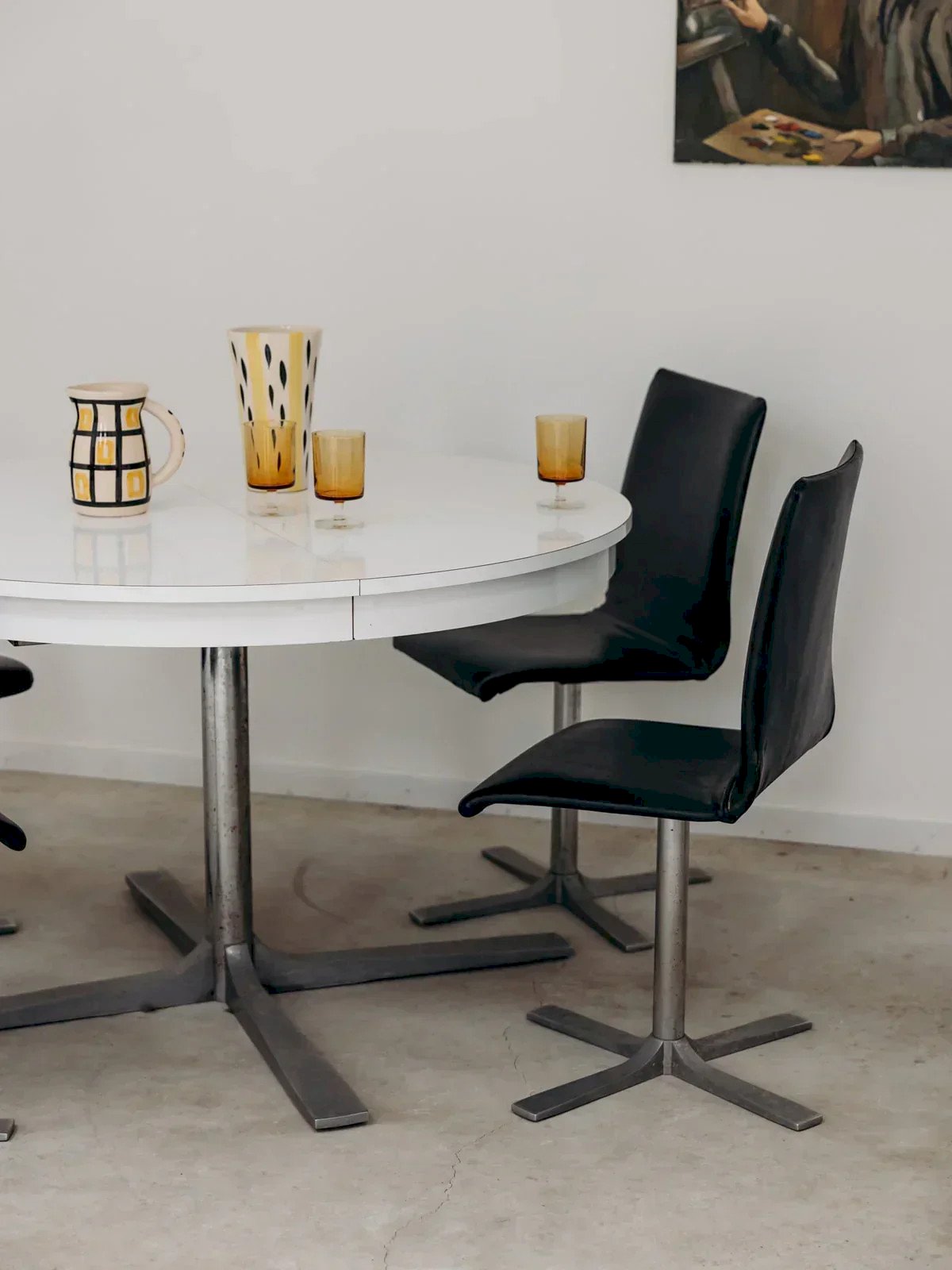 Ces chaises en métal et simili cuir noir allient design moderne et confort. Leur structure métallique robuste, combinée à l'assise en simili cuir noir, offre une touche industrielle et contemporaine à votre salle à manger ou bureau. Élégantes et pratiques, elles apportent à la fois style et durabilité, tout en garantissant une assise agréable. Un choix parfait pour ceux qui recherchent des meubles à la fois tendance et fonctionnels. Vendues à l'unité, 4 exemplaires sont disponibles. Largeur : 42 cm Hauteur : 89 cm Hauteur d'assise : 45 cm Profondeur : 42 cm État:Occasion: Objet ayant été utilisé. Objet présentant quelques marques d'usure superficielle, ...Occasion: Objet ayant été utilisé. Objet présentant quelques marques d'usure superficielle, entièrement opérationnel et fonctionnant correctement. Il peut s'agir d'un modèle de démonstration ou d'un objet retourné en magasin après une courte période d'utilisation. les éventuelles imperfections. Couleur:Multicouleur Hauteur:Métal, Simili cuir Largeur:Chaises Marque:Debongout Type:Produit chiné Matériau:Métal, Simili cuir Style:Contemporain