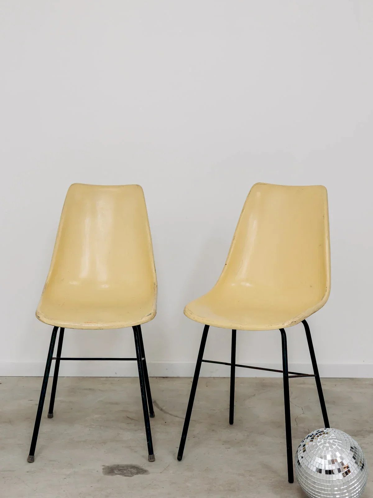 Coup de cœur pour cette chaise signée Miroslav Navràtil et fabriquée à la fin des années 50. Elle est composée d'un piètement métallique noir sur lequel vient reposer une coque en fibre de verre. Ces chaises sont estampillées au dessous. Nous aimons la finesse de ses lignes et sa couleur pleine de douceur. L'assise parfaite pour aménager une chambre ou un salon avec style. Chaises vendues à l'unité, 4 exemplaires sont disponibles. Largeur : 42 cm Hauteur : 88 cm Hauteur d'assise : 43 cm Profondeur : 45 cm État:Occasion: Objet ayant été utilisé. Objet présentant quelques marques d'usure superficielle, ...Occasion: Objet ayant été utilisé. Objet présentant quelques marques d'usure superficielle, entièrement opérationnel et fonctionnant correctement. Il peut s'agir d'un modèle de démonstration ou d'un objet retourné en magasin après une courte période d'utilisation. les éventuelles imperfections. Couleur:Multicouleur Hauteur:Métal, Fibre de verre Largeur:Chaises Marque:Debongout Type:Produit chiné Matériau:Métal, Fibre de verre Style:Contemporain
