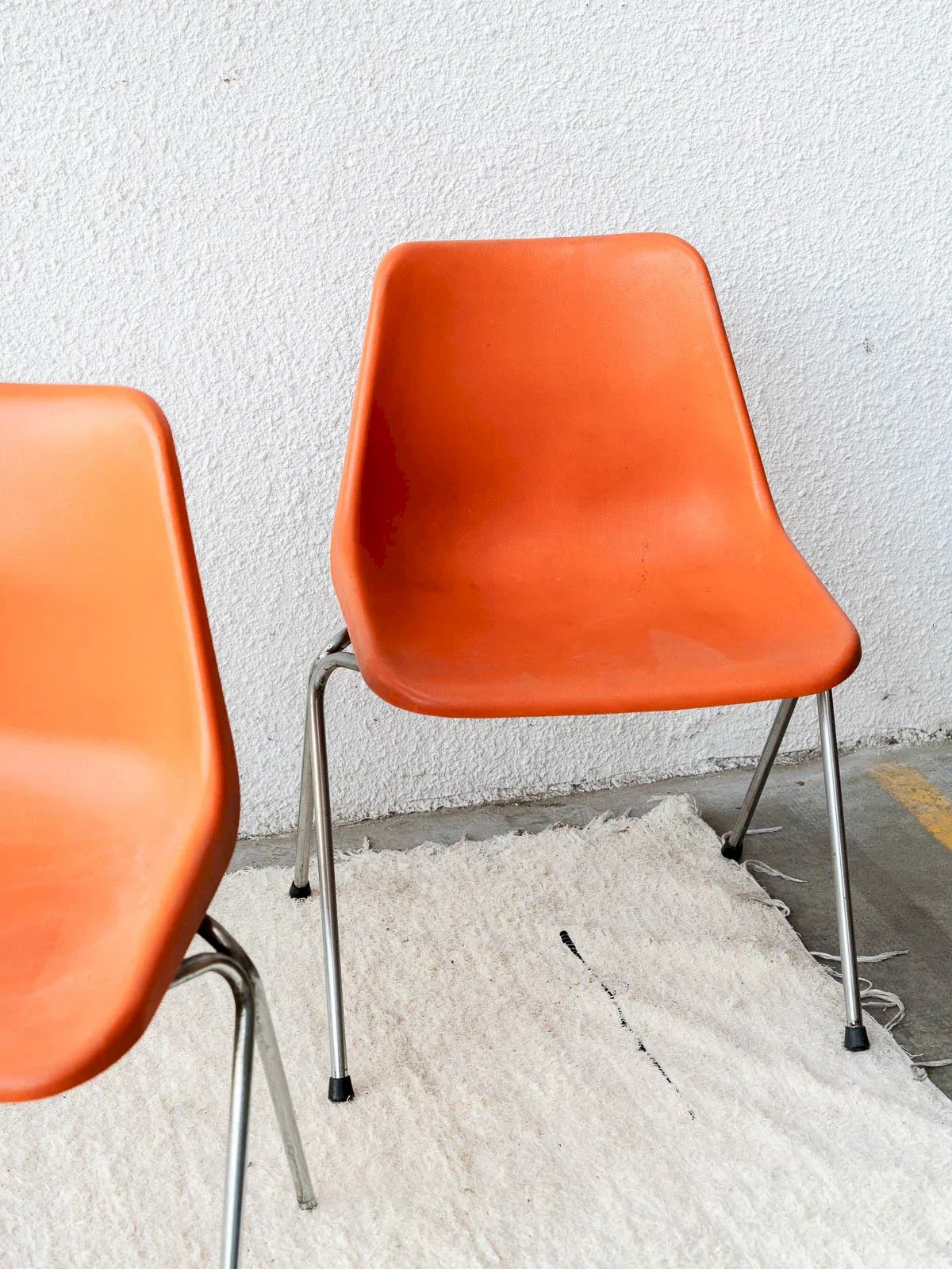 Découvrez ces chaises orange au design emblématique de Robin Day, fabriquées en résine avec des pieds en métal. Ces chaises allient style et fonctionnalité, parfaites pour rehausser votre intérieur. Notez qu'une des chaises présente un manque de patin noir en caoutchouc sur l'un de ses pieds et quelques traces d'usage, ajoutant une touche d'authenticité. Un choix idéal pour les amateurs de mobilier rétro! Vendue à l'unité, 3 exemplaires disponibles. Largeur : 45,5 cm Hauteur : 74 cm Hauteur d'assise : 43 cm Profondeur de l'assise : 37 cm État:Occasion: Objet ayant été utilisé. Objet présentant quelques marques d'usure superficielle, ...Occasion: Objet ayant été utilisé. Objet présentant quelques marques d'usure superficielle, entièrement opérationnel et fonctionnant correctement. Il peut s'agir d'un modèle de démonstration ou d'un objet retourné en magasin après une courte période d'utilisation. les éventuelles imperfections. Couleur:Multicouleur Hauteur:Résine, Métal Largeur:Chaises Marque:Debongout Type:Produit chiné Matériau:Résine, Métal Style:Contemporain