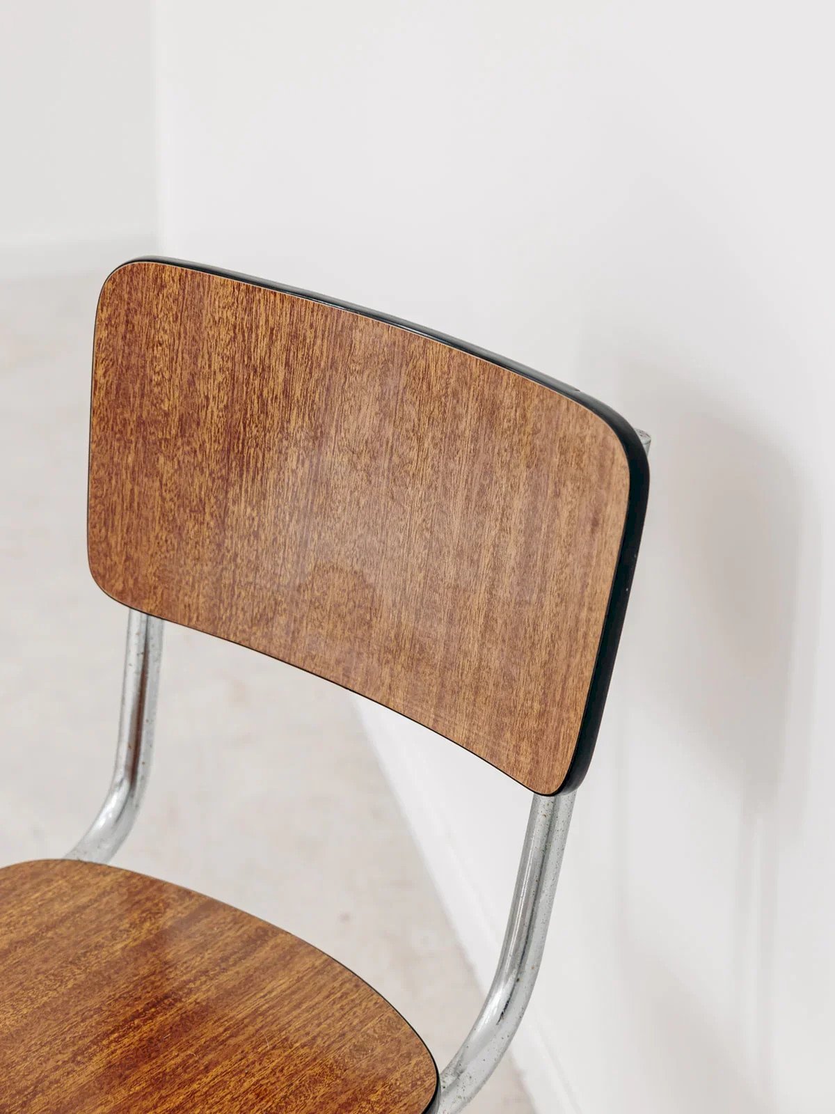 Ajoutez une touche rétro et industrielle à votre espace avec cette chaise au pied tubulaire chromé en métal. Son assise et dossier en formica marron, rehaussés d’une tranche noire, offrent un sublime look vintage. Parfaite pour une cuisine, un bureau ou une salle à manger, elle allie style et praticité. Largeur : 40 cm Hauteur : 84 cm Hauteur d'assise : 46,5 cm Profondeur : 50 cm Profondeur d'assise : 36 cm État:Occasion: Objet ayant été utilisé. Objet présentant quelques marques d'usure superficielle, ...Occasion: Objet ayant été utilisé. Objet présentant quelques marques d'usure superficielle, entièrement opérationnel et fonctionnant correctement. Il peut s'agir d'un modèle de démonstration ou d'un objet retourné en magasin après une courte période d'utilisation. les éventuelles imperfections. Couleur:Multicouleur Hauteur:Chrome, Métal, Formica Largeur:Chaises Marque:Debongout Type:Produit chiné Matériau:Chrome, Métal, Formica Style:Contemporain