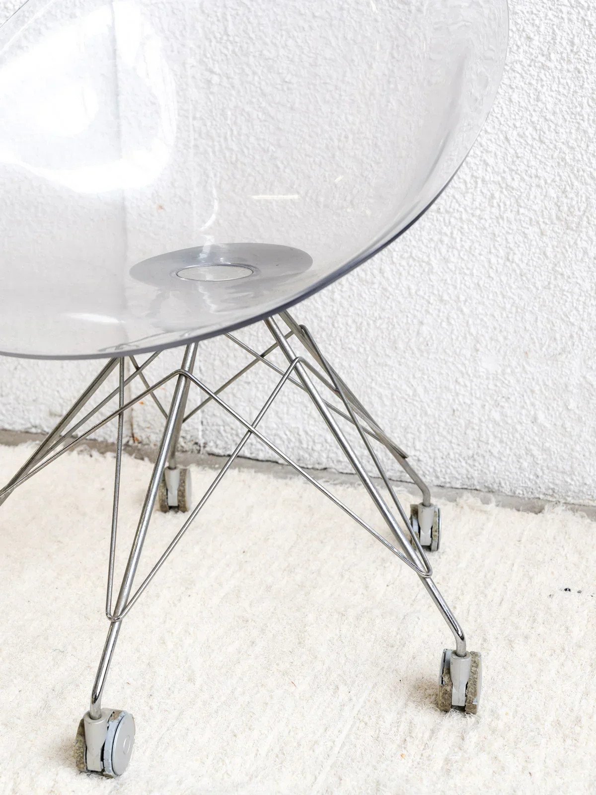 La chaise englobante en plexiglass, souvent associée au designer Philippe Starck, est une pièce emblématique qui combine fonctionnalité et esthétique minimaliste. Ce type de chaise a été conçu pour offrir une sensation d'immersion et de confort tout en restant fidèle aux principes de design avant-gardiste. Starck est reconnu pour sa capacité à transformer des matériaux comme le plexiglass en objets à la fois modernes et intemporels. Longueur : 64 cm Hauteur : 83 cm Hauteur d'assise : 43,5 cm Profondeur : 42,5 cm État:Occasion: Objet ayant été utilisé. Objet présentant quelques marques d'usure superficielle, ...Occasion: Objet ayant été utilisé. Objet présentant quelques marques d'usure superficielle, entièrement opérationnel et fonctionnant correctement. Il peut s'agir d'un modèle de démonstration ou d'un objet retourné en magasin après une courte période d'utilisation. les éventuelles imperfections. Couleur:Multicouleur Hauteur:Plexiglass Largeur:Chaises Marque:Debongout Type:Produit chiné Matériau:Plexiglass Style:Contemporain