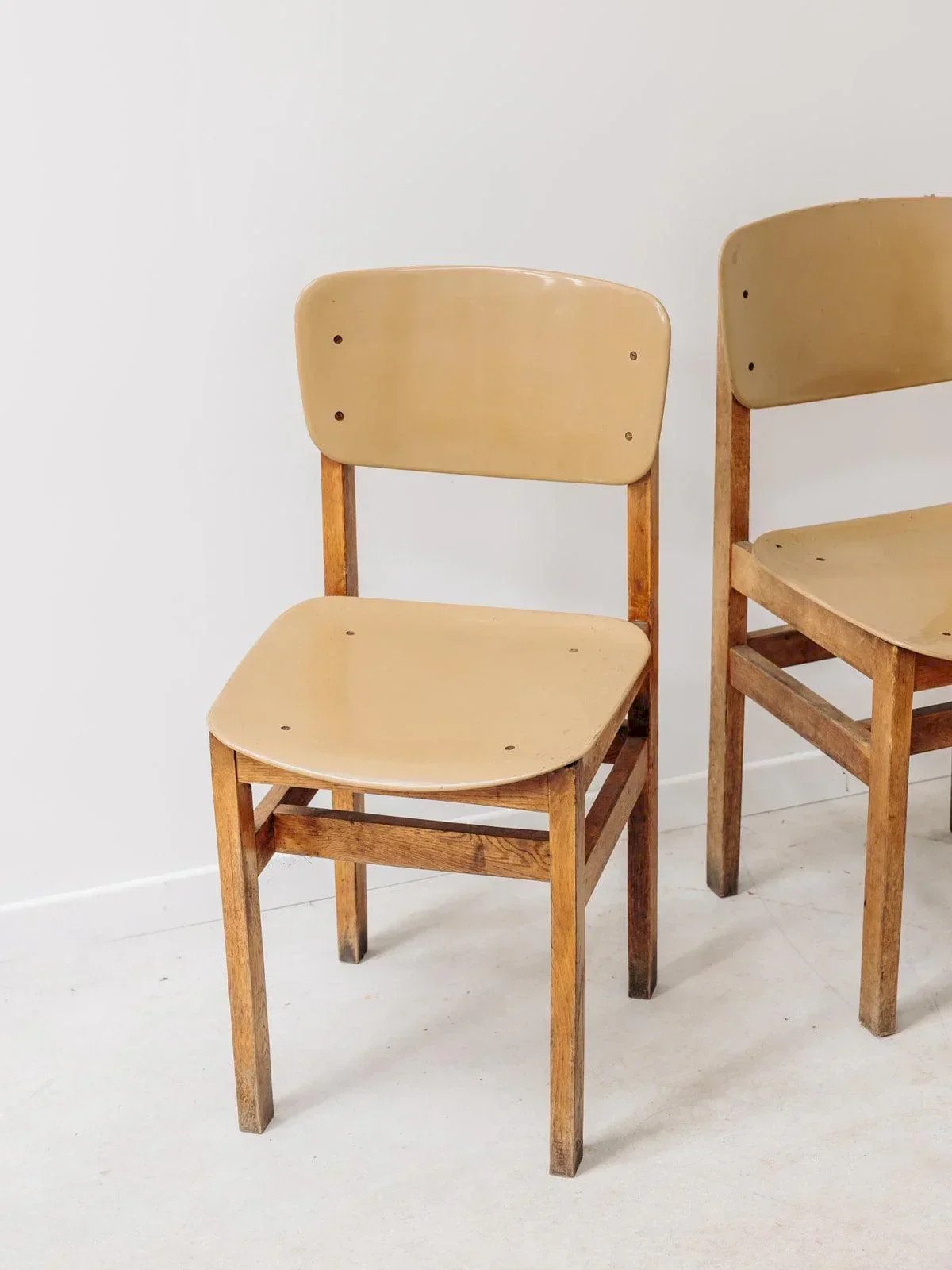 Cette chaise en bois allie design confort et robustesse. Ses lignes délicates et son assise agréable en font un choix idéal pour la salle à manger ou un bureau. Avec ses pieds en bois clair, elle apporte une touche naturelle et moderne. Nous aimons également son assise en plastique moulé très confortable. Vendues à l'unité, 4 exemplaires sont disponibles. Exclusivité web, la rencontre se fera chez vous ! Largeur : 40 cm Hauteur : 80 cm Hauteur d'assise : 45,5 cm Profondeur : 41 cm État:Occasion: Objet ayant été utilisé. Objet présentant quelques marques d'usure superficielle, ...Occasion: Objet ayant été utilisé. Objet présentant quelques marques d'usure superficielle, entièrement opérationnel et fonctionnant correctement. Il peut s'agir d'un modèle de démonstration ou d'un objet retourné en magasin après une courte période d'utilisation. les éventuelles imperfections. Couleur:Multicouleur Hauteur:Bois, Plastique Largeur:Chaises Marque:Debongout Type:Produit chiné Matériau:Bois, Plastique Style:Contemporain