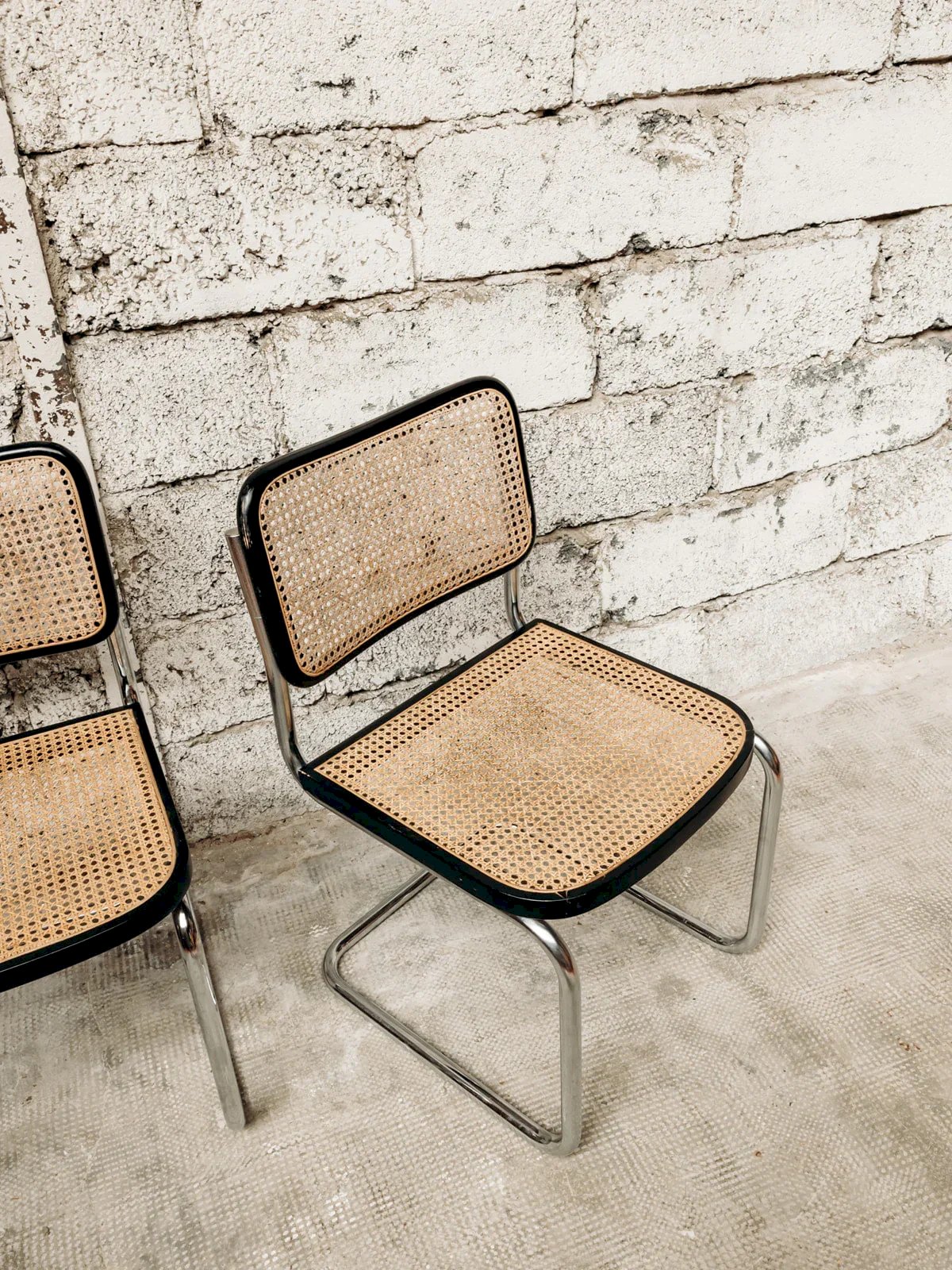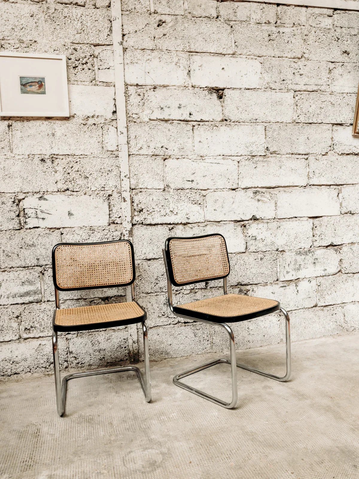 Découvrez la paire de chaises Breuer en noir et cannage clair, un incontournable pour apporter une touche de modernité à votre intérieur. Dotées d'une structure tubulaire robuste, ces chaises allient élégance et confort, tout en reflétant un design intemporel. Parfaites pour agrémenter votre salle à manger ou votre espace de travail, elles s’intègrent harmonieusement dans divers styles déco. Disponibles en deux paires, elles sont idéales pour partager des moments conviviaux. Longueur : 46 cm Hauteur : 80 cm Hauteur d'assise : 45 cm Profondeur : 50 cm État:Occasion: Objet ayant été utilisé. Objet présentant quelques marques d'usure superficielle, ...Occasion: Objet ayant été utilisé. Objet présentant quelques marques d'usure superficielle, entièrement opérationnel et fonctionnant correctement. Il peut s'agir d'un modèle de démonstration ou d'un objet retourné en magasin après une courte période d'utilisation. les éventuelles imperfections. Couleur:Multicouleur Hauteur:Cannage, Bois, Métal Largeur:Chaises Marque:Debongout Type:Produit chiné Matériau:Cannage, Bois, Métal Style:Contemporain