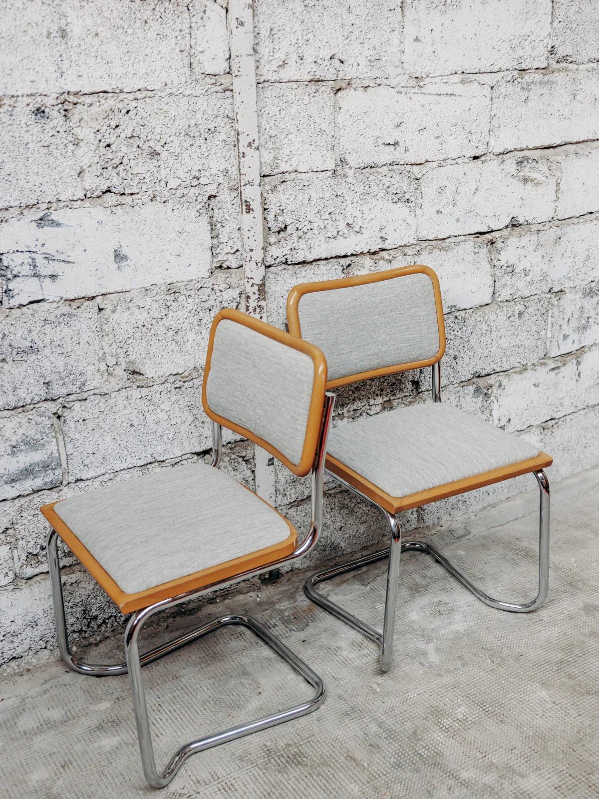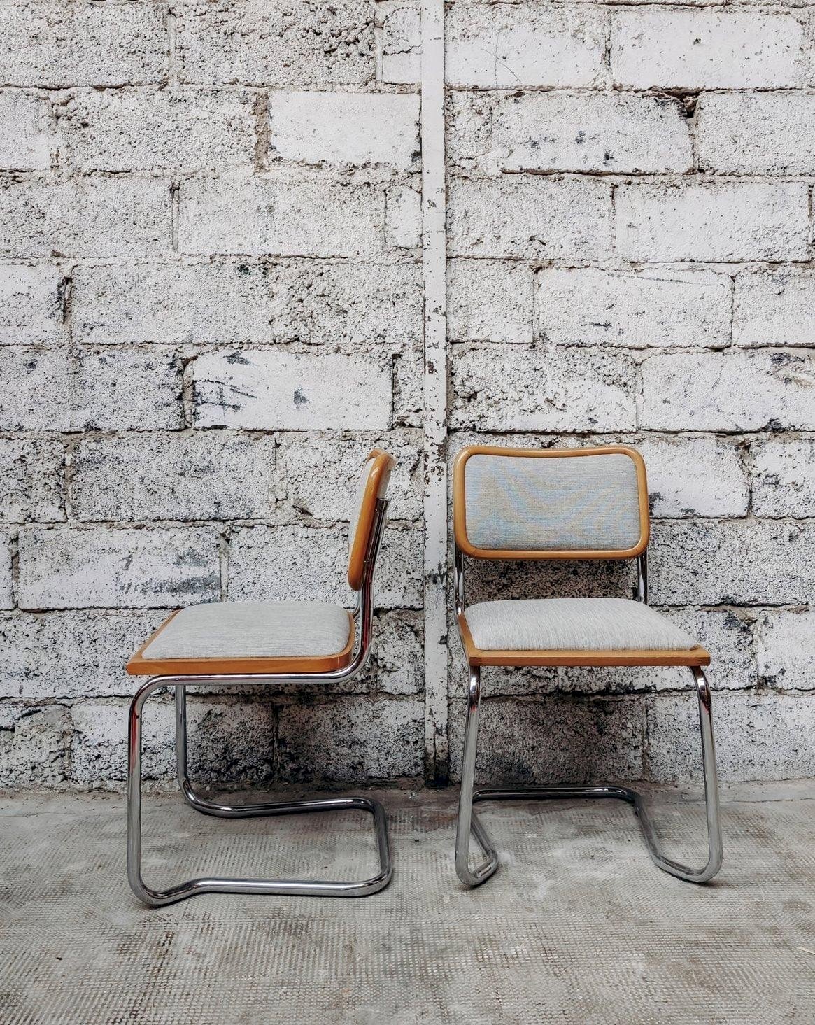 Découvrez cette élégante paire de chaises Breuer alliant métal et bois pour un style intemporel. Leur assise et dossier en tissu gris offrent confort et modernité. La structure fine en métal assure robustesse et légèreté. Idéales autour d'une table ou en siège d'appoint. Un design classique revisité pour votre intérieur. Vendues par paire, deux quantités sont disponibles ! Longueur : 46 cm Hauteur : 85 cm Hauteur d'assise : 50 cm Profondeur : 42 cm État:Occasion: Objet ayant été utilisé. Objet présentant quelques marques d'usure superficielle, ...Occasion: Objet ayant été utilisé. Objet présentant quelques marques d'usure superficielle, entièrement opérationnel et fonctionnant correctement. Il peut s'agir d'un modèle de démonstration ou d'un objet retourné en magasin après une courte période d'utilisation. les éventuelles imperfections. Couleur:Multicouleur Hauteur:Métal, Bois, Tissu Largeur:Chaises Marque:Debongout Type:Produit chiné Matériau:Métal, Bois, Tissu Style:Contemporain