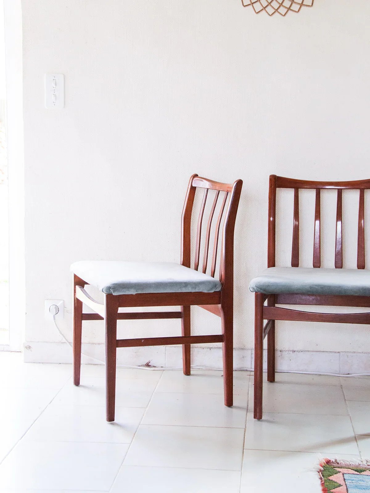 Découvrez cette paire de chaises au style élégant qui apportera confort et charme à votre intérieur. L’assise en velours bleu offre un toucher doux et agréable, tandis que la structure en bois assure une bonne stabilité. Les quatre barres du dossier ajoutent un joli détail décoratif. Parfaites pour une salle à manger, un salon ou un bureau, ces chaises allient confort et esthétique. Un duo élégant pour compléter votre décoration avec style ! Longueur : 49 cm Hauteur : 76 cm Hauteur d'assise : 43 cm Profondeur : 43 cm État:Occasion: Objet ayant été utilisé. Objet présentant quelques marques d'usure superficielle, ...Occasion: Objet ayant été utilisé. Objet présentant quelques marques d'usure superficielle, entièrement opérationnel et fonctionnant correctement. Il peut s'agir d'un modèle de démonstration ou d'un objet retourné en magasin après une courte période d'utilisation. les éventuelles imperfections. Couleur:Multicouleur Hauteur:Bois, Velours Largeur:Chaises Marque:Debongout Type:Produit chiné Matériau:Bois, Velours Style:Contemporain
