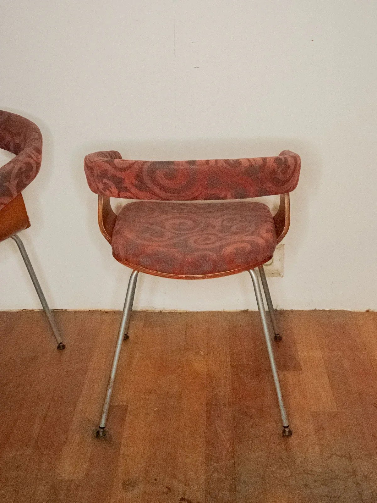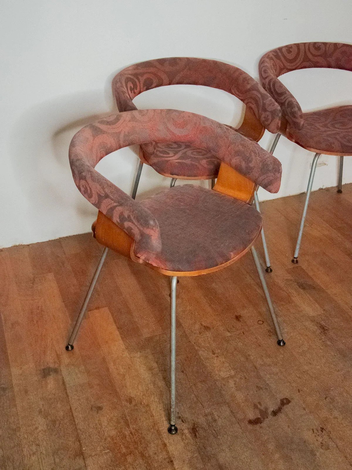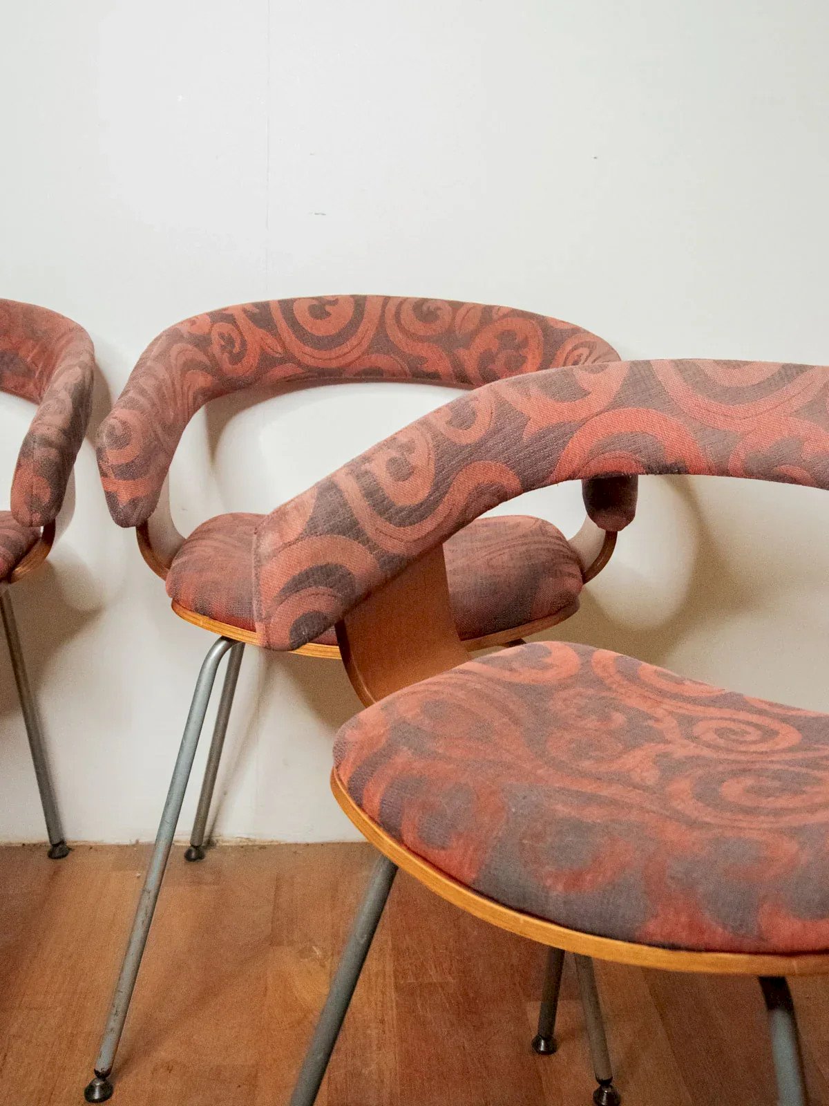 Adoptez ce lot de quatre chaises Mollie des années 90 conçues par John Coleman pour Allermuir. Leurs pieds en acier chromé soutiennent une assise en forme de coquille en bois, recouverte de son tissu d'origine au rendu graphique et élégant. Leur silhouette légère s'intègre aussi bien à une salle à manger contemporaine qu'à un coin bureau, apportant une touche rétro maîtrisée et une présence chaleureuse. Patinées par le temps, elles racontent une histoire subtile. Tissus éclaircis présentant de discrets petits accrocs visibles sur les photos, ils ont été intégralement nettoyés. Largeur : 53,5 cm Hauteur : 73 cm Hauteur d'assise : 45 cm Profondeur : 50 cm Profondeur de l'assise : 42 cm Largeur de l'assise : 42 cm État:Occasion: Objet ayant été utilisé. Objet présentant quelques marques d'usure superficielle, ...Occasion: Objet ayant été utilisé. Objet présentant quelques marques d'usure superficielle, entièrement opérationnel et fonctionnant correctement. Il peut s'agir d'un modèle de démonstration ou d'un objet retourné en magasin après une courte période d'utilisation. les éventuelles imperfections. Couleur:Multicouleur Hauteur:Métal, Tissu, Bois Largeur:Chaises Marque:Debongout Type:Produit chiné Matériau:Métal, Tissu, Bois Style:Contemporain