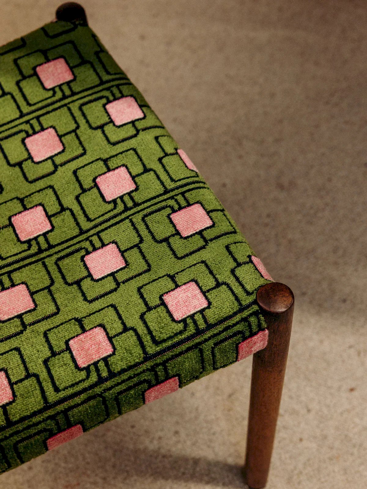 Lot de 4 chaises en bois au dessin élégant et lignes fines, parfaites autour d’une table. Les assises ont été retapissées en velours à motif vert, noir et rose, qui apportent une touche contemporaine et chaleureuse. Leur ligne s’inspire du design de Niels Otto, mêlant simplicité scandinave et confort, le bois soulignant une silhouette sobre et facile à associer à différents intérieurs. Légères traces du temps qui participent à son charme. Largeur : 47 cm Hauteur : 76 cm Hauteur d'assise : 45 cm Profondeur : 44 cm État:Occasion: Objet ayant été utilisé. Objet présentant quelques marques d'usure superficielle, ...Occasion: Objet ayant été utilisé. Objet présentant quelques marques d'usure superficielle, entièrement opérationnel et fonctionnant correctement. Il peut s'agir d'un modèle de démonstration ou d'un objet retourné en magasin après une courte période d'utilisation. les éventuelles imperfections. Couleur:Multicouleur Hauteur:Bois, Tissu Largeur:Chaises Marque:Debongout Type:Produit chiné Matériau:Bois, Tissu Style:Contemporain