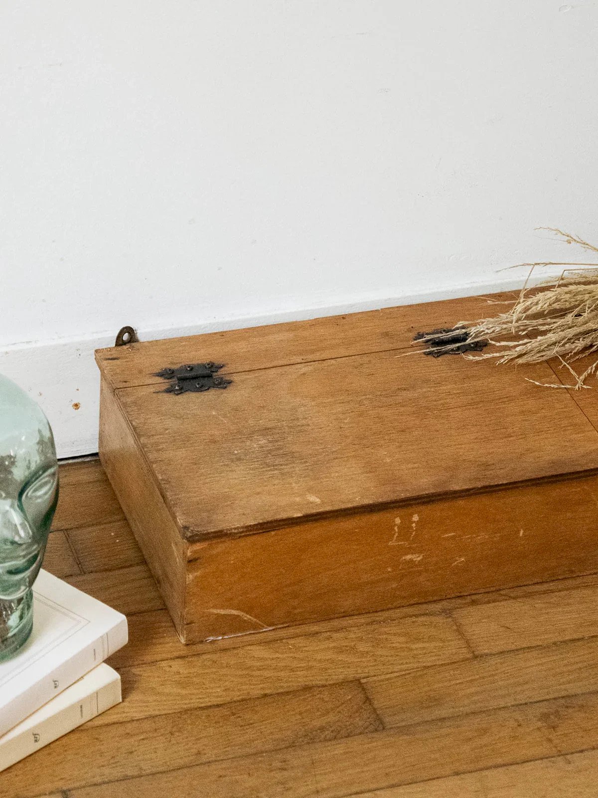 Découvrez cette magnifique boîte en bois au style pupitre, inspirée des anciennes caisses de métiers. Ses casiers pratiques offriront une touche d'authenticité à votre décoration tout en étant fonctionnels. Bien que marquée par le temps, avec des traces d’usure visibles notamment sur le fond qui a été renforcé, cette pièce unique saura séduire les amateurs de charme vintage et de patine. Idéale pour ranger vos petits objets avec élégance, elle s'intégrera parfaitement dans un intérieur chaleureux. Longueur : 67 cm Largeur : 24 cm Hauteur : 10,5 cm État:Occasion: Objet ayant été utilisé. Objet présentant quelques marques d'usure superficielle, ...Occasion: Objet ayant été utilisé. Objet présentant quelques marques d'usure superficielle, entièrement opérationnel et fonctionnant correctement. Il peut s'agir d'un modèle de démonstration ou d'un objet retourné en magasin après une courte période d'utilisation. les éventuelles imperfections. Marque:Debongout Type:Produit chiné Matériau:Bois Style:Campagne