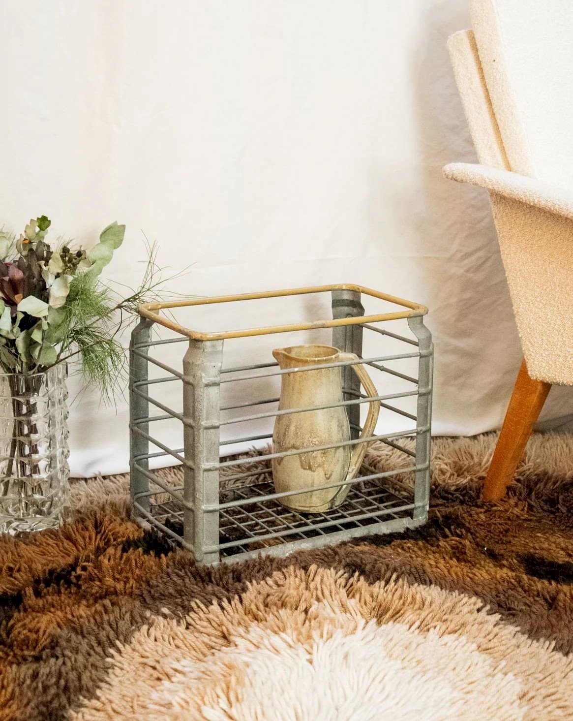 Adoptez un casier à lait original et vintage, en métal galvanisé, au design industriel sobre et élégant. Sa structure robuste et format compact offre une capacité modulable pour accueillir bouteilles, bocaux ou accessoires, et s'intègre aussi bien en cuisine qu'en atelier ou dans une entrée. Utilisé comme élément décoratif, il apporte une touche vintage authentique et pratique à votre intérieur. Traces du temps présentes et visibles. 5 exemplaires disponibles, vendus à l'unité. Longueur : 40 cm Largeur : 24 cm Hauteur : 34 cm État:Occasion: Objet ayant été utilisé. Objet présentant quelques marques d'usure superficielle, ...Occasion: Objet ayant été utilisé. Objet présentant quelques marques d'usure superficielle, entièrement opérationnel et fonctionnant correctement. Il peut s'agir d'un modèle de démonstration ou d'un objet retourné en magasin après une courte période d'utilisation. les éventuelles imperfections. Marque:Debongout Type:Produit chiné Matériau:Métal Style:Campagne