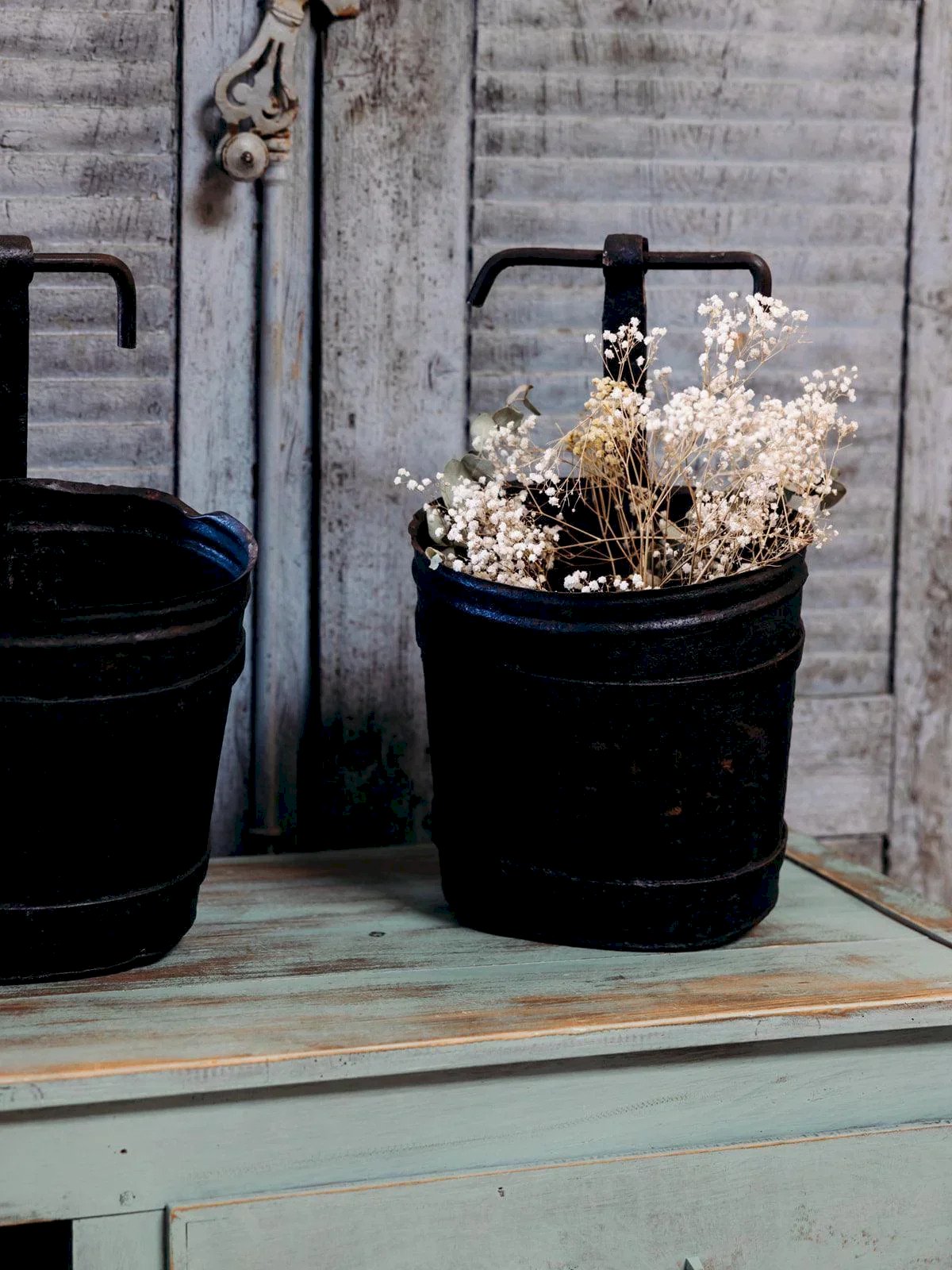 Alerte pépite vintage ! On imagine ces magnifiques seaux de moulin d'époque comme cache-pots ou comme éléments de décoration et de rangement. En provenance du Portugal, ils sont en fonte. Vendus à l'unité, cinq sont disponibles. Exclusivité web, la rencontre se fera chez vous ! Longueur : 28 cm Largeur : 23,5 cm Hauteur du sceau : 27 cm Hauteur de avec anse : 49 cm État:Occasion: Objet ayant été utilisé. Objet présentant quelques marques d'usure superficielle, ...Occasion: Objet ayant été utilisé. Objet présentant quelques marques d'usure superficielle, entièrement opérationnel et fonctionnant correctement. Il peut s'agir d'un modèle de démonstration ou d'un objet retourné en magasin après une courte période d'utilisation. les éventuelles imperfections. Marque:Debongout Type:Produit chiné Matériau:Fonte Style:Campagne