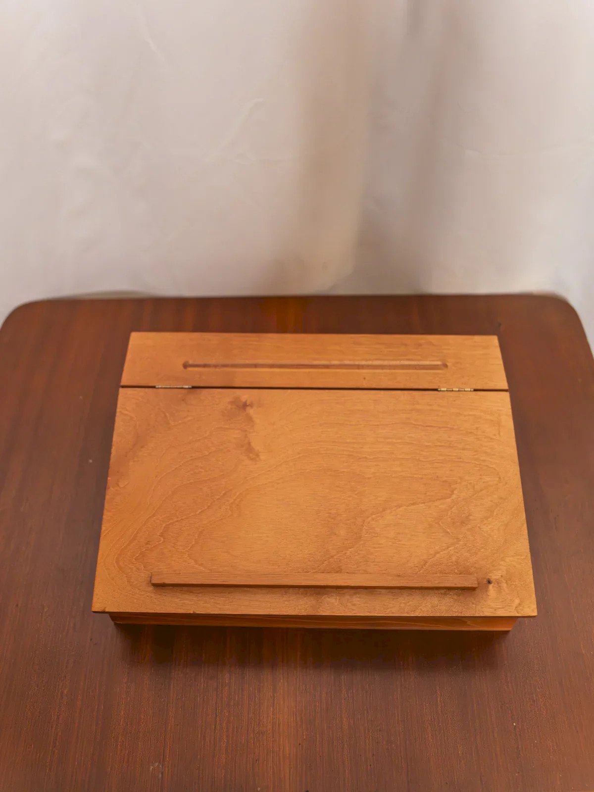 Adoptez cet écritoire artisanal en bois clair, petit format, au charme sobre et travaillé. Sa surface intime et son repose-stylo intégré en font un compagnon idéal pour la correspondance, les croquis et les notes quotidiennes, sans encombrer un bureau ou une console. La patine douce et la finition manuelle apportent une atmosphère chaleureuse et propice à la création, entre tradition et simplicité. Légères traces du temps présentes. Longueur : 33 cm Largeur : 25 cm Hauteur : 10 cm État:Occasion: Objet ayant été utilisé. Objet présentant quelques marques d'usure superficielle, ...Occasion: Objet ayant été utilisé. Objet présentant quelques marques d'usure superficielle, entièrement opérationnel et fonctionnant correctement. Il peut s'agir d'un modèle de démonstration ou d'un objet retourné en magasin après une courte période d'utilisation. les éventuelles imperfections. Marque:Debongout Type:Produit chiné Matériau:Bois, Métal Style:Campagne