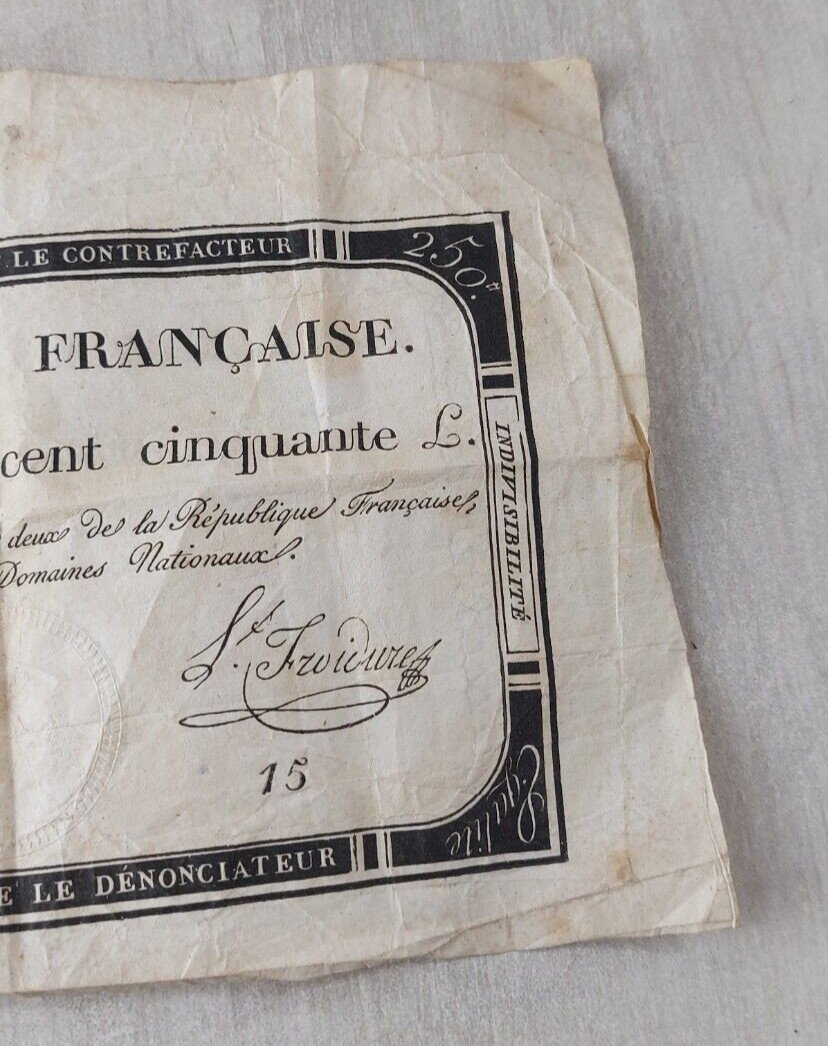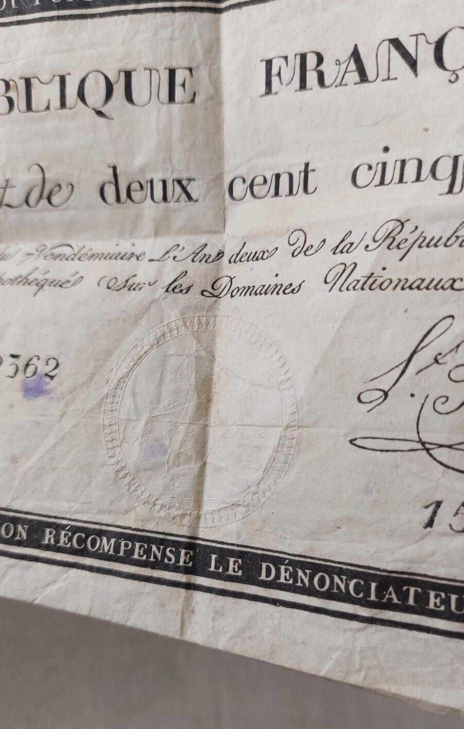Ancien assignat, 250 Livres, 1793 / 7ème Vendémiaire lan deux