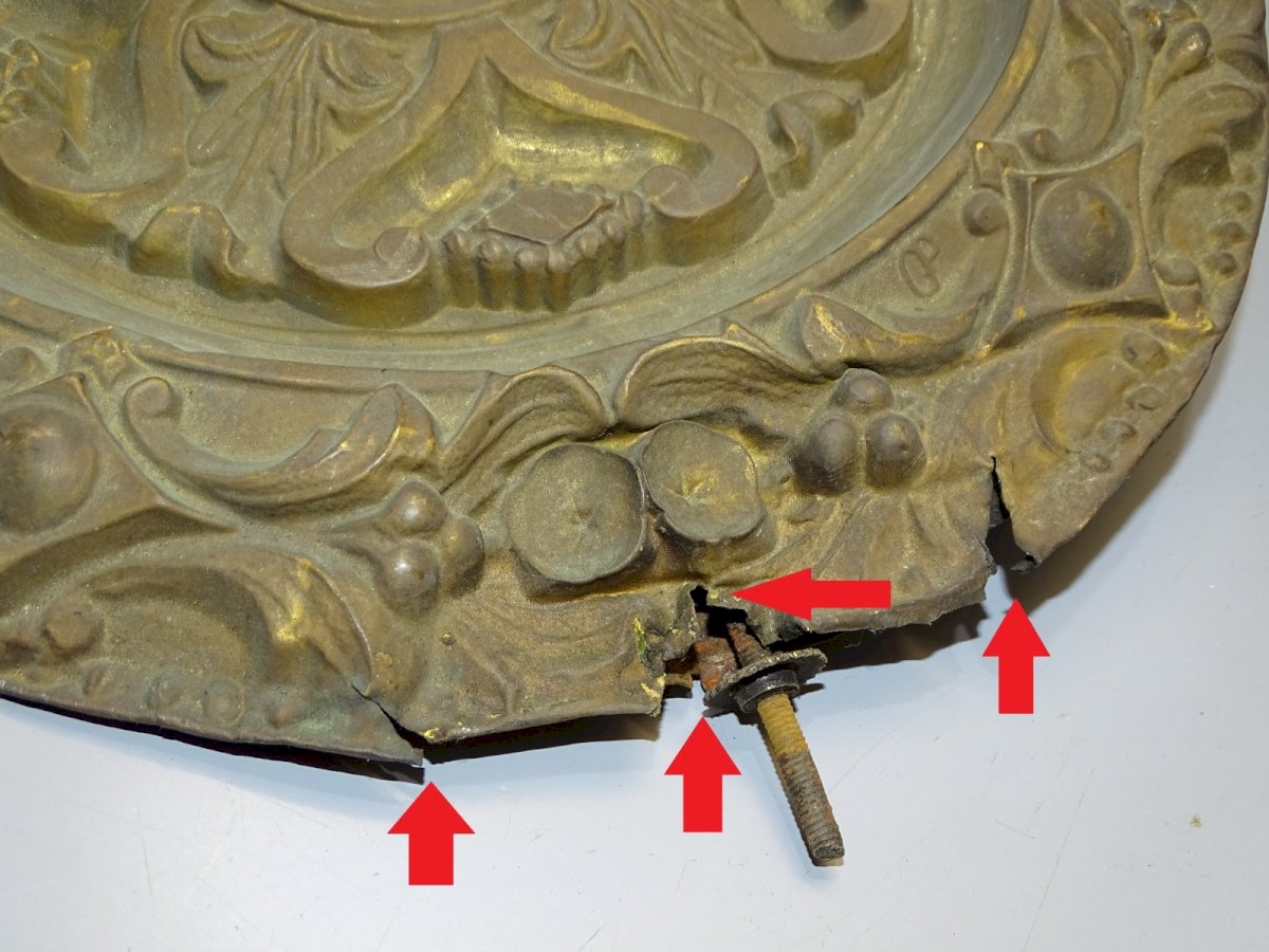 ancien balancier de pendule en laiton repoussé - le bas est déchiré - sorti de grenier dans son jus - état d'usage ( voir photos ) - Réf. 42141025/118 - Hauteur 1 m 01 cm - largeur max 28,5 cm - Poids 1 kg - Pour me contacter mon adresse mail : EXPEDITION en Mondial relay ou Colissimo sur demande EMBALLAGE GARANTI très protecteur MERCI de BIEN REGARDER TOUTES les PHOTOS car ELLES FONT PARTIE INTEGRANTE de la DESCRIPTION et PERMETTENT de VOIR l'OBJET AU MIEUX -