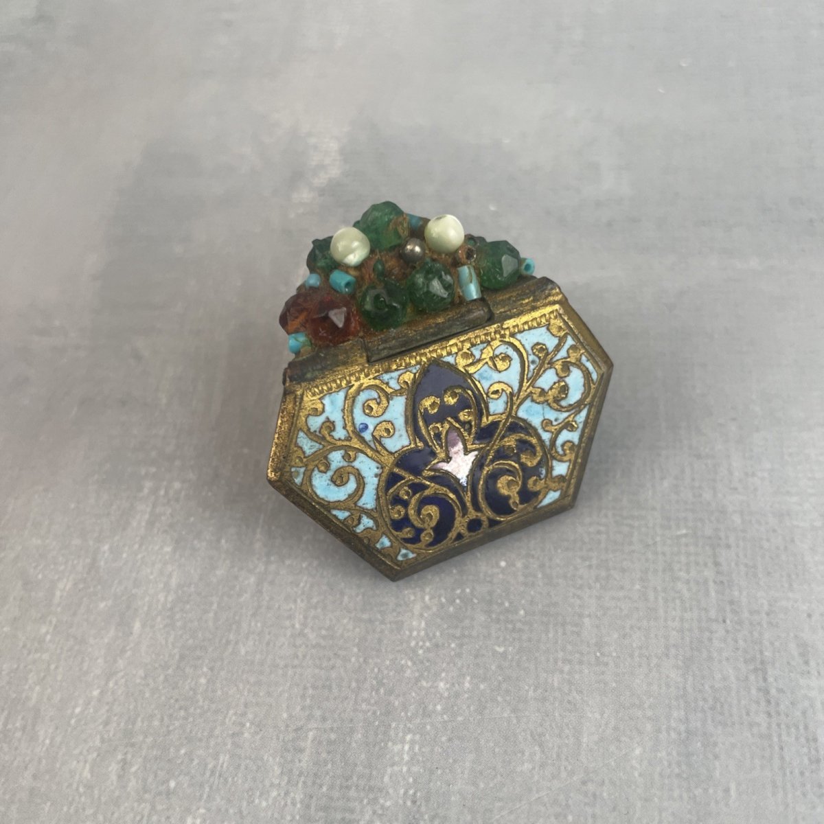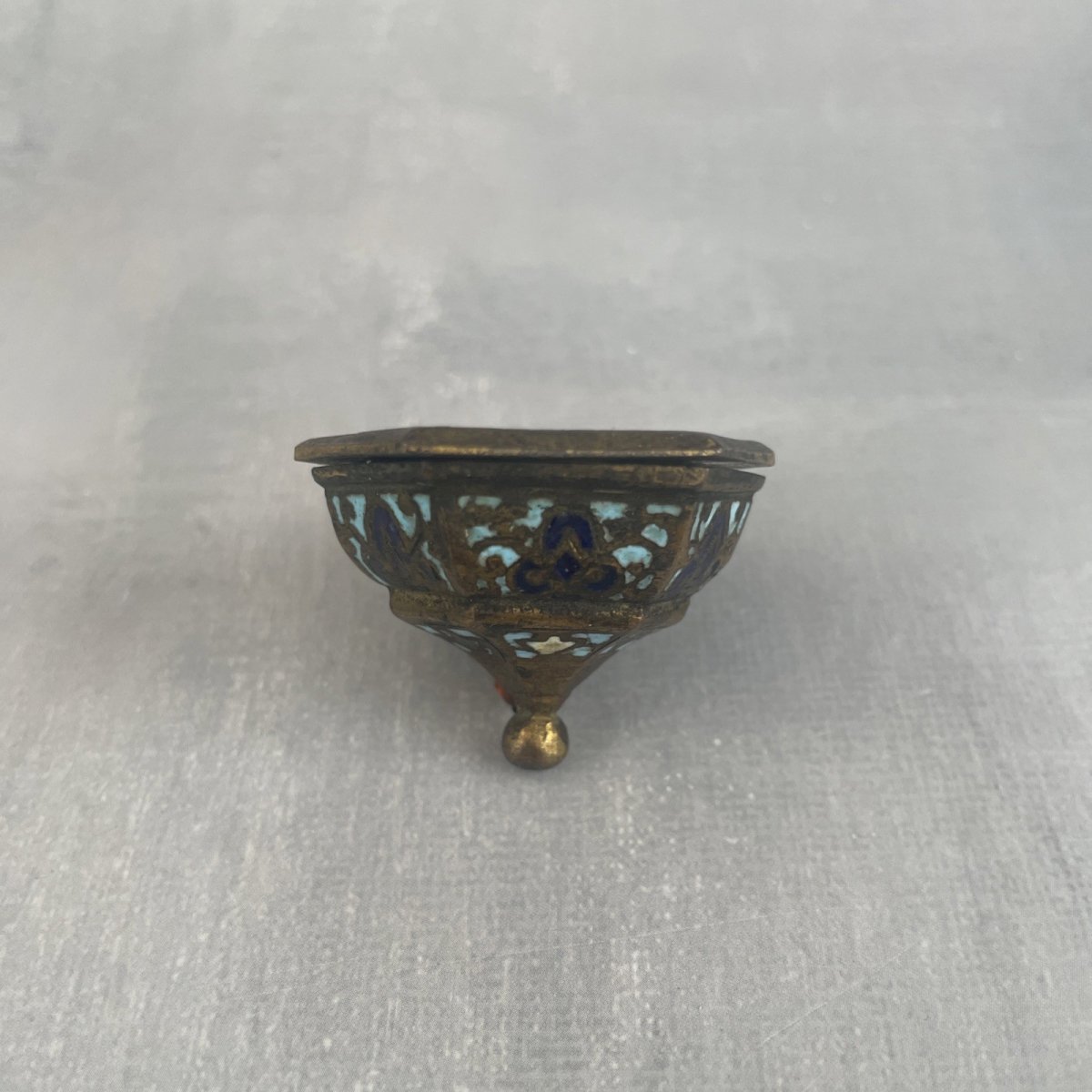 Ancien bénitier partie basse laiton émail cloisonné transformé en boite pilulier