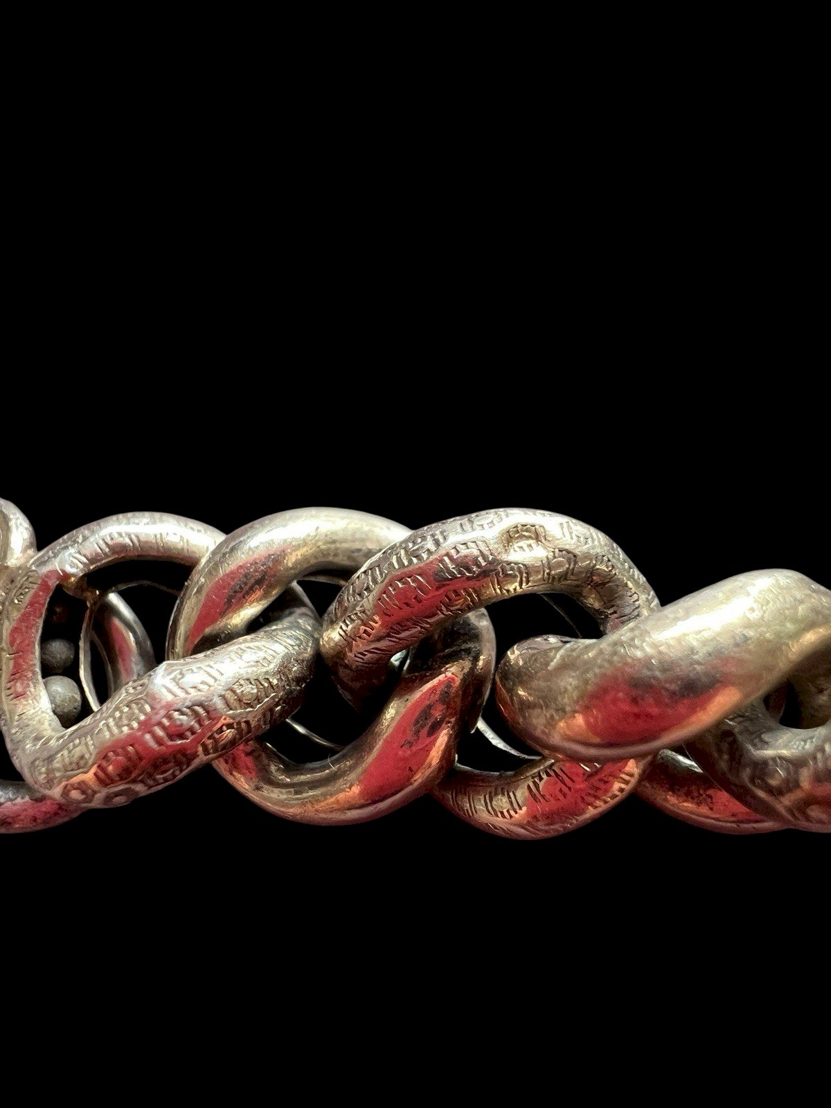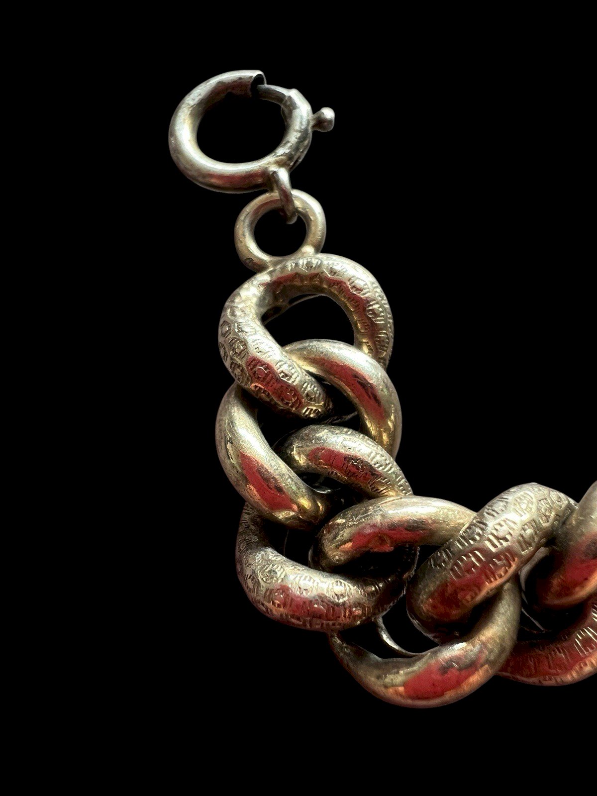 Ancien Bracelet Gourmette Fin 19E Début Xxe Siècle Argent Vermeil Unisexe