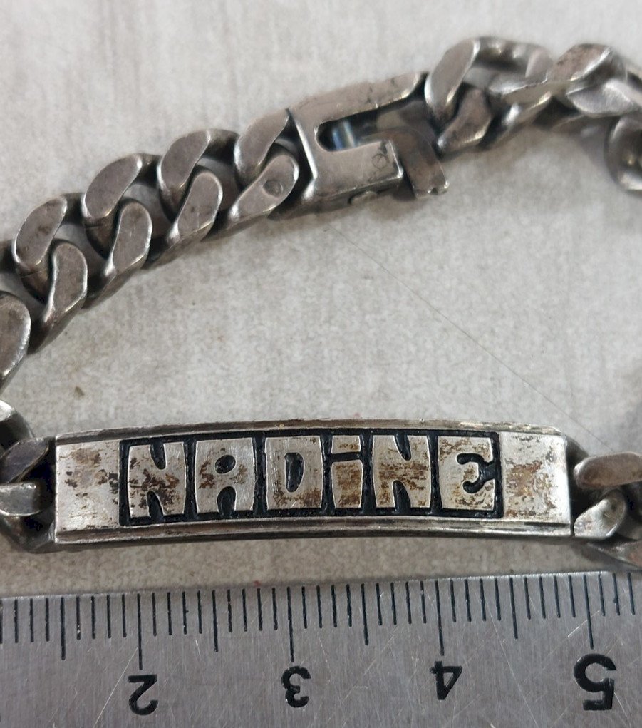 Ancien bracelet / gourmette, Nadine, en argent massif, vintage ^