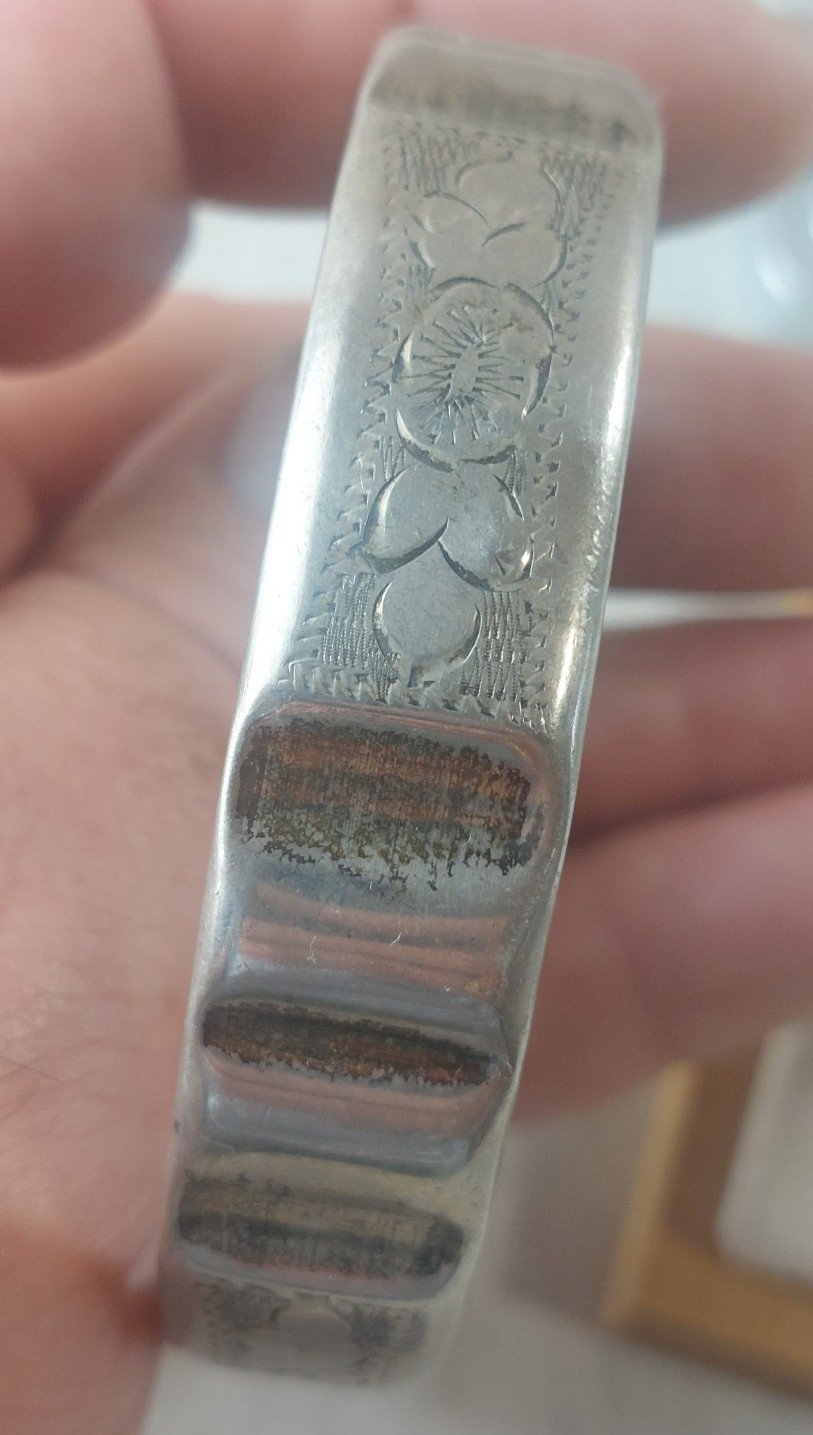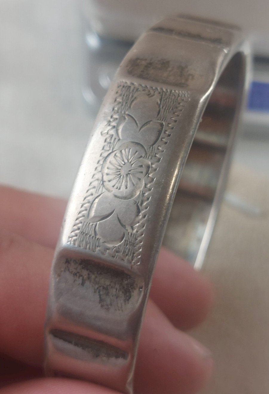 Ancien bracelet jonc / manchette, décor gravé, en argent 800, vintage