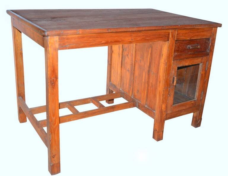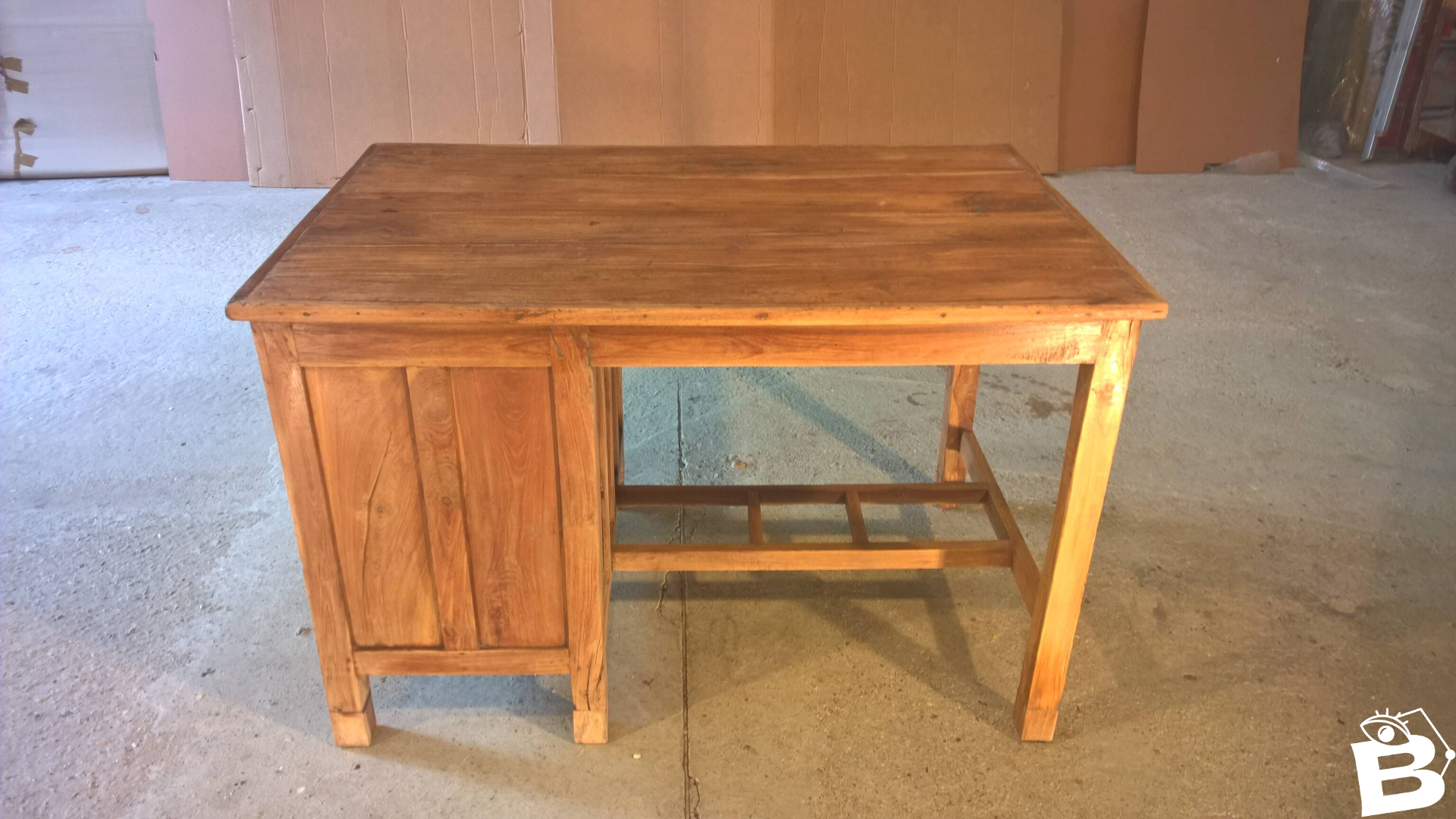 Ancien bureau en teck birman avec 1 caisson 1 porte vitrée + 1 tiroir Classique Bois