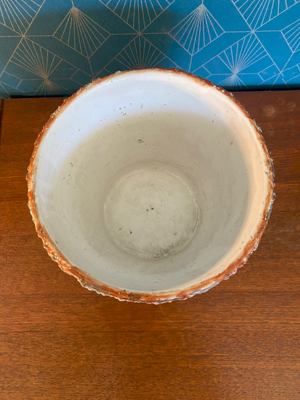 Ancien Cache Pot Poterie Jardinière terre cuite Vernissée extérieur Intérieur