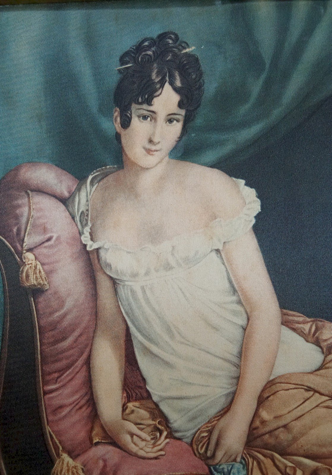Ancien Cadre Doré Velours Reproduction Sur Tissu Satiné Mme Récamier F Gérard