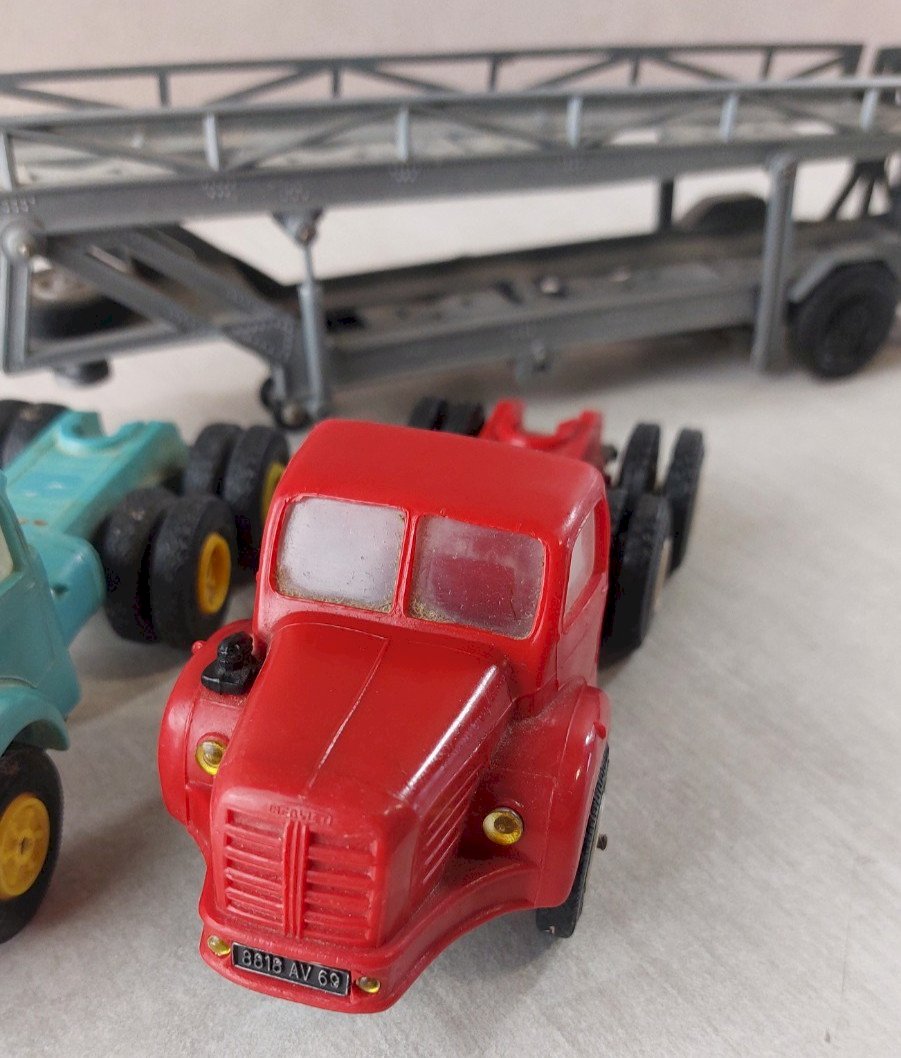 Ancien camion Berliet TBO remorque porte voiture, Norev, 1/43